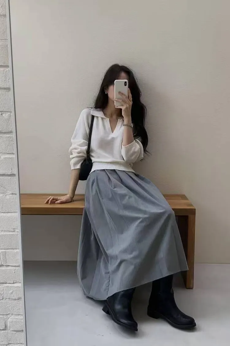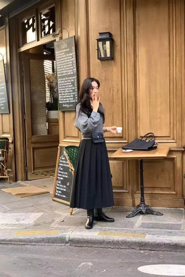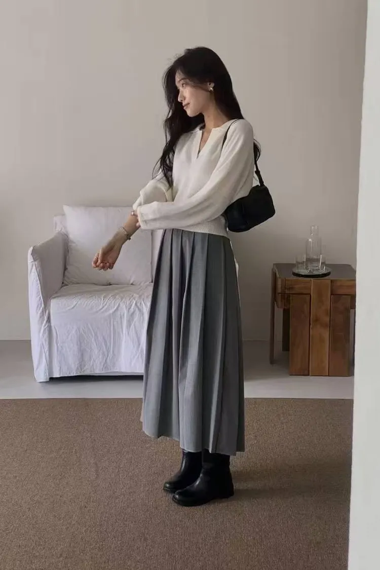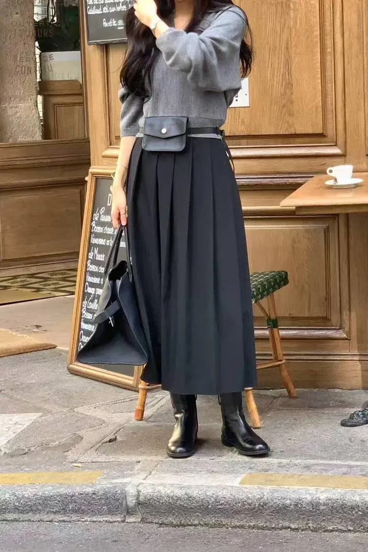 韓國代購 DRESS ROOM 百褶長裙 休閒百搭長裙