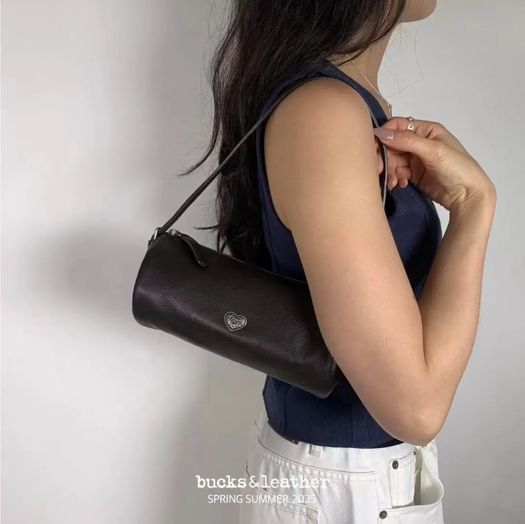 韓國代購 bucks&leather 羊皮心型徽章圓筒包 單肩斜背腋下包