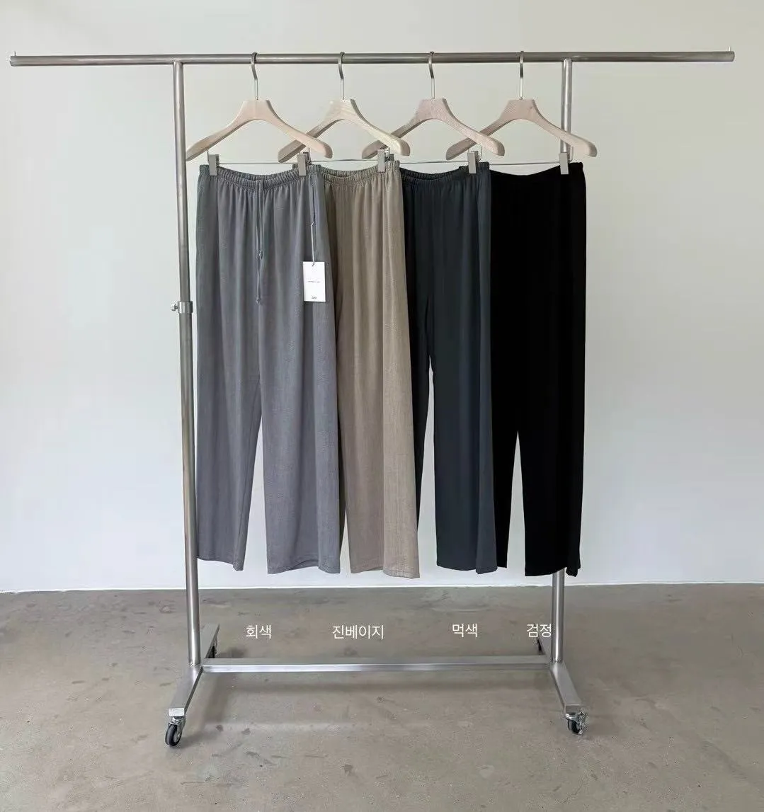 天絲羊毛直筒薄款鬆緊腰休閒褲 垂墜感顯瘦長褲