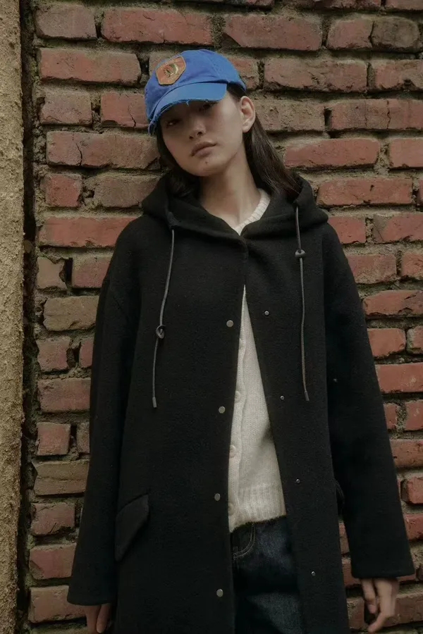 高質感羊駝毛連帽大衣 中長版連帽大衣