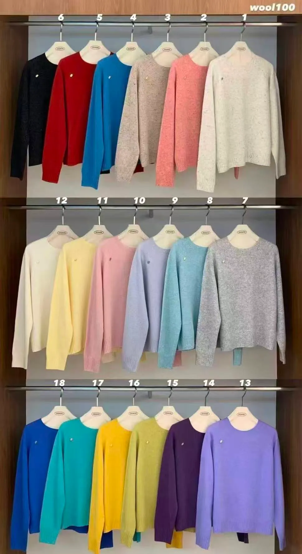 one mone 18色金屬小標100%純羊毛圓領針織長袖上衣
