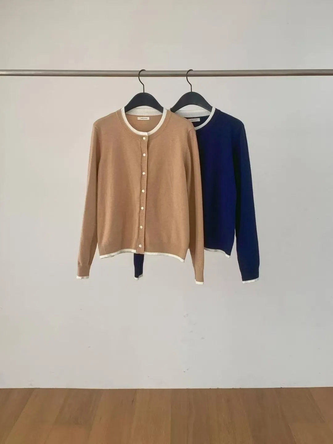 DRESS ROOM 撞色針織長袖上衣 秋日針織羊毛開襟外套