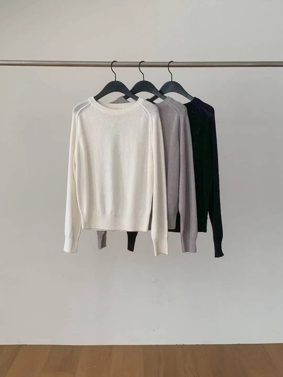 DRESS ROOM 圓領針織長袖毛衣 簡約氣質針織衫