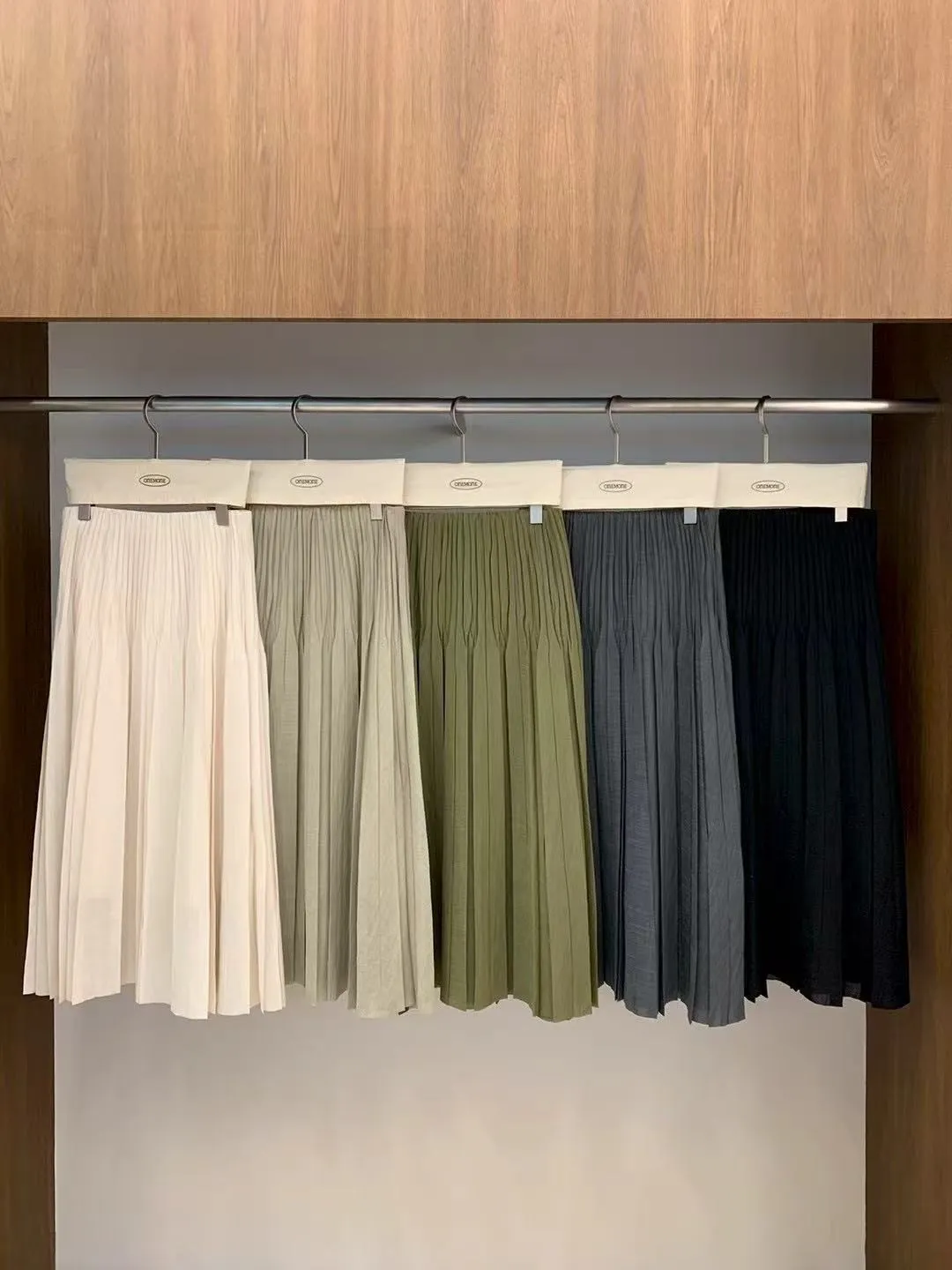 One mone 文青氣質鬆緊腰百褶長裙
