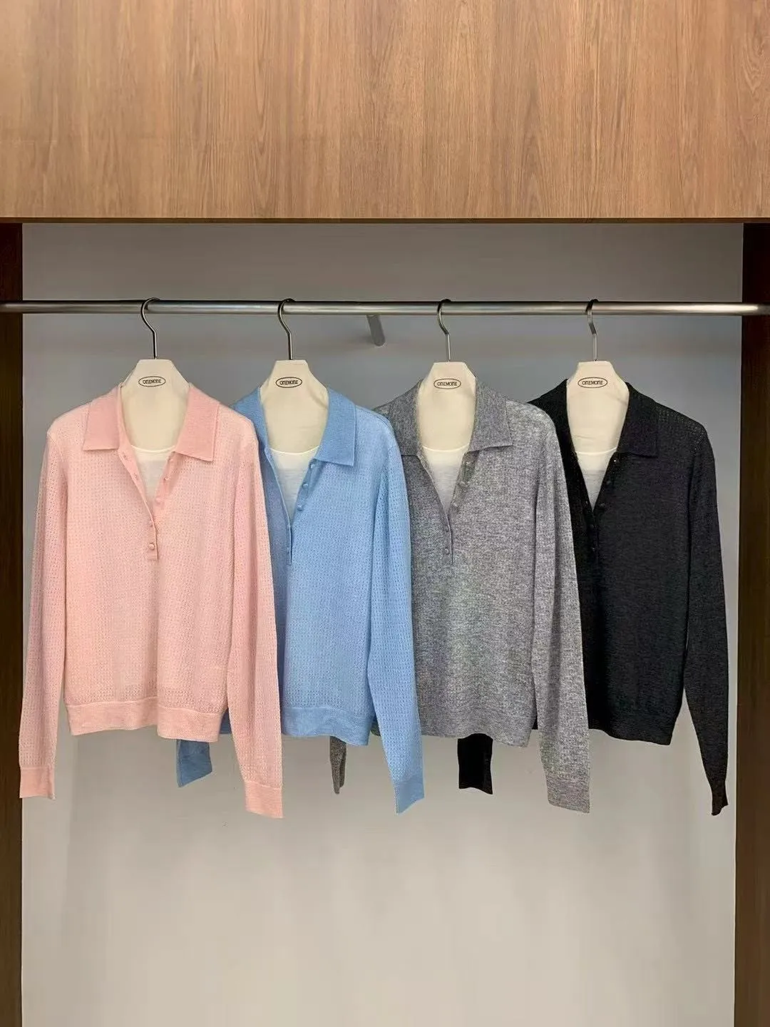 One mone POLO領針織衫 輕薄假兩件長袖羊毛毛衣