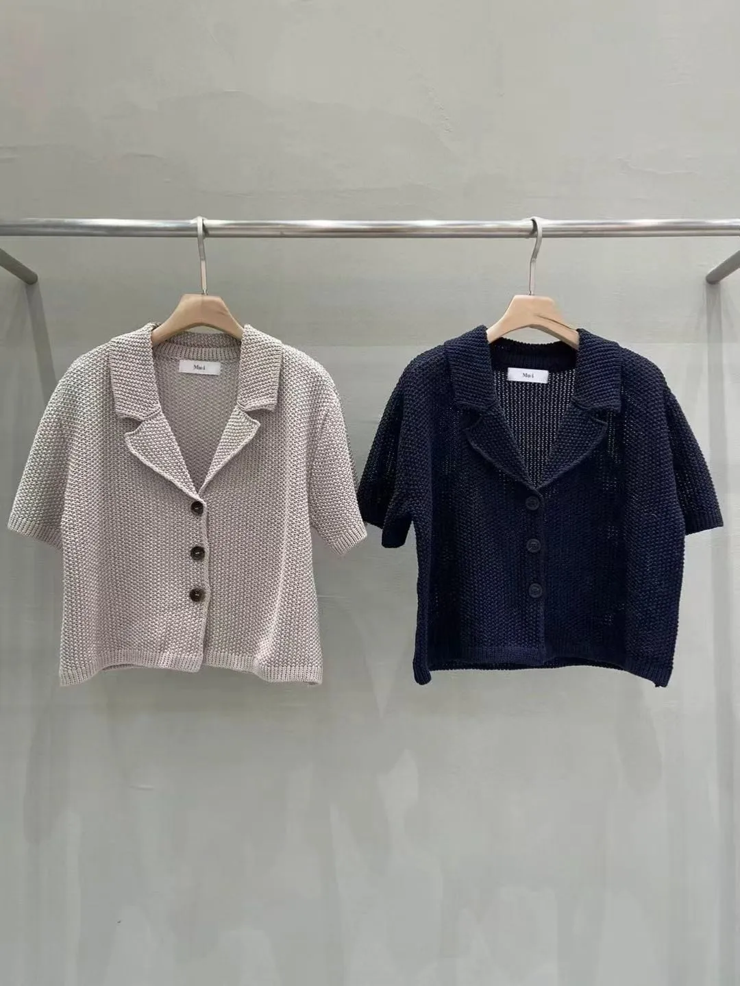 MUI 泰熙歐膩家 翻領針織短袖上衣 短版開襟小外套