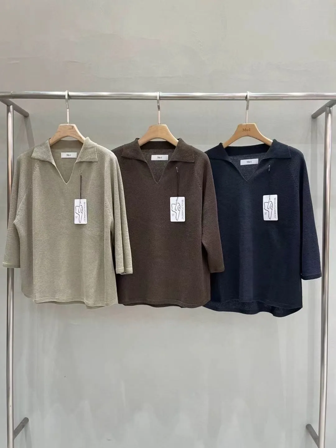 MUI 泰熙歐膩家 極簡質感風V領翻領針織上衣