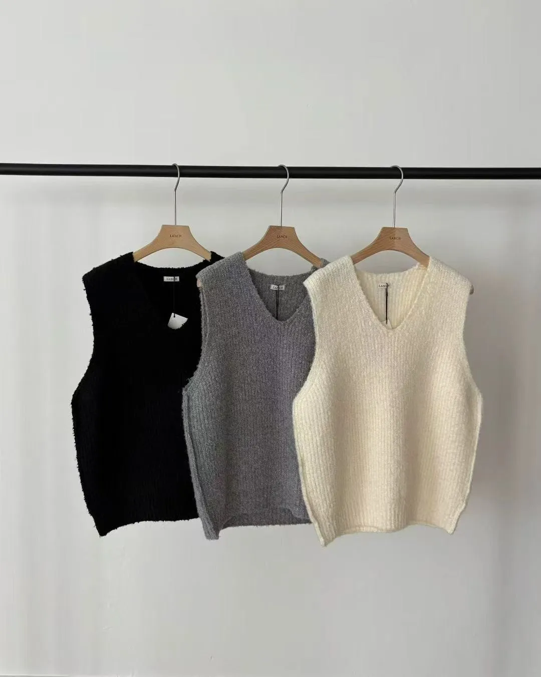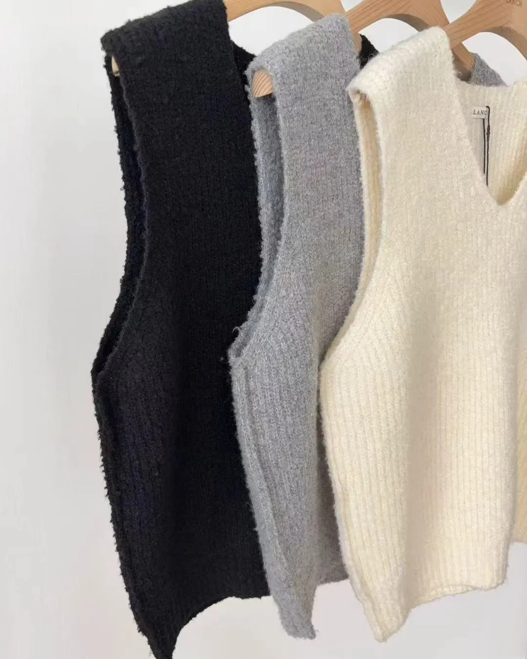 V領針織羊毛背心 秋冬毛呢厚背心