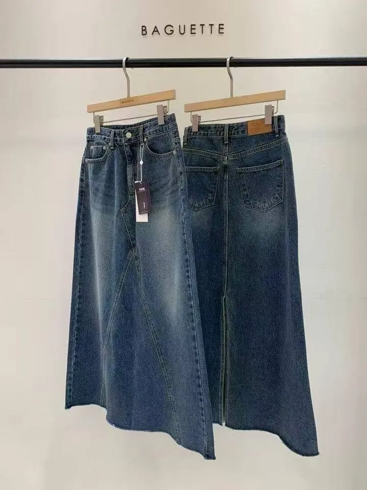 韓國代購 秋季新款 開叉牛仔半身裙 牛仔長裙