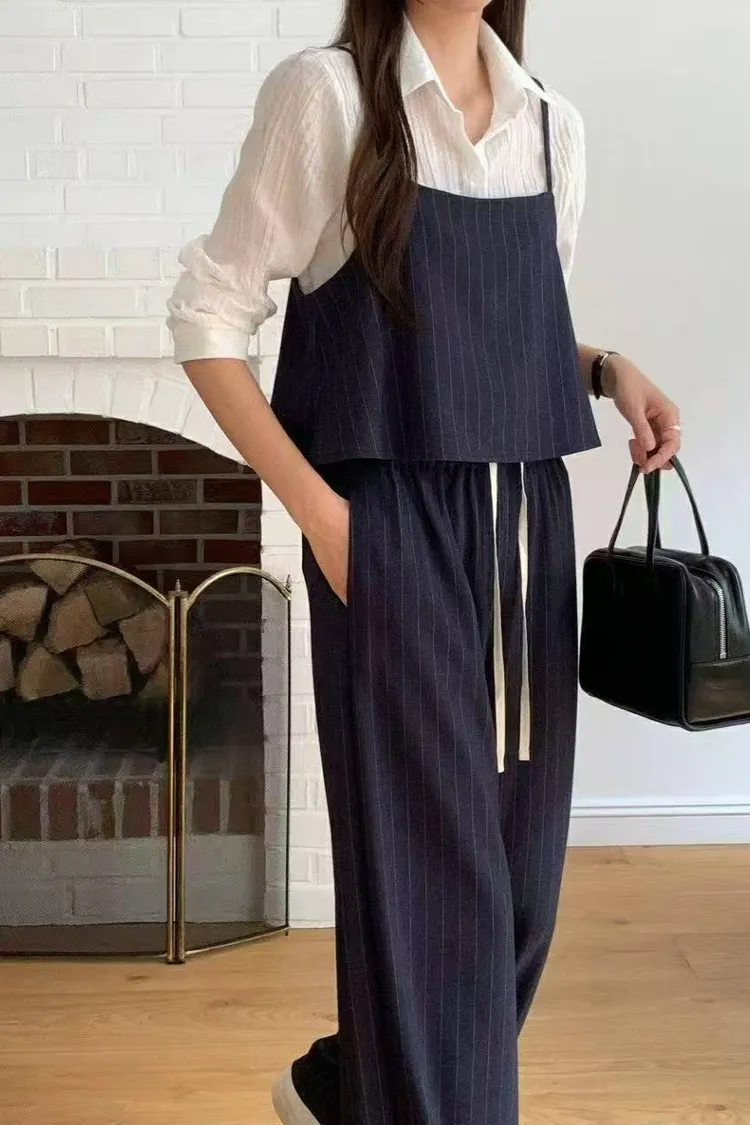 韓國連線款 條紋背心休閒套裝 休閒褲