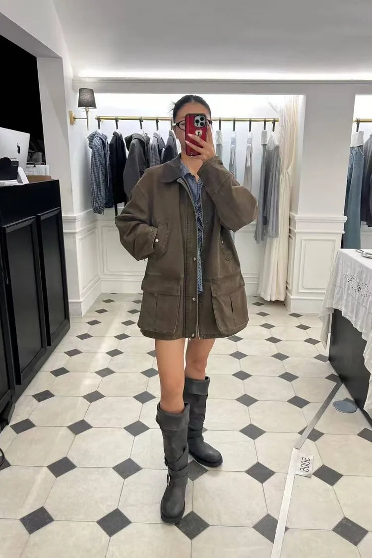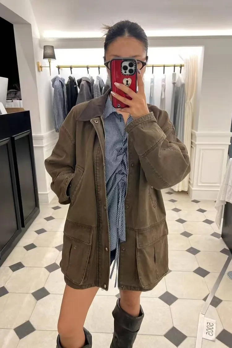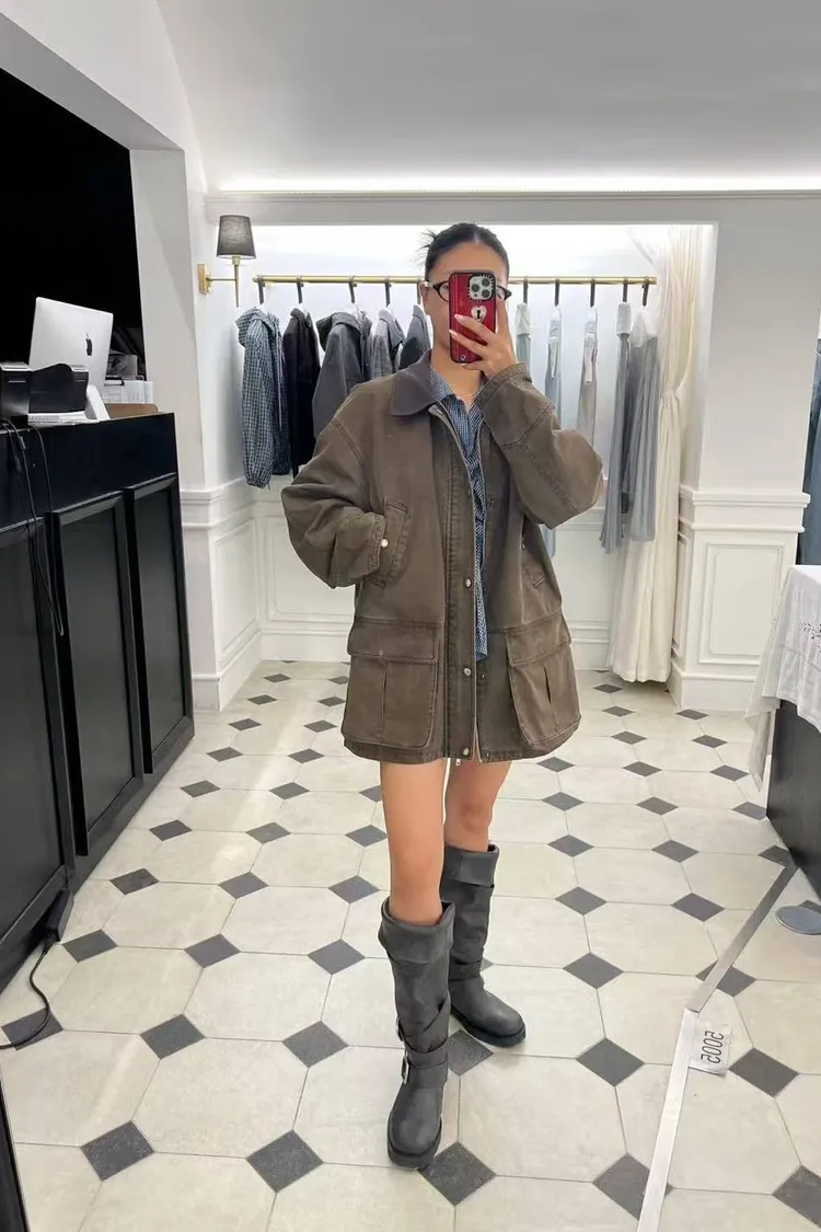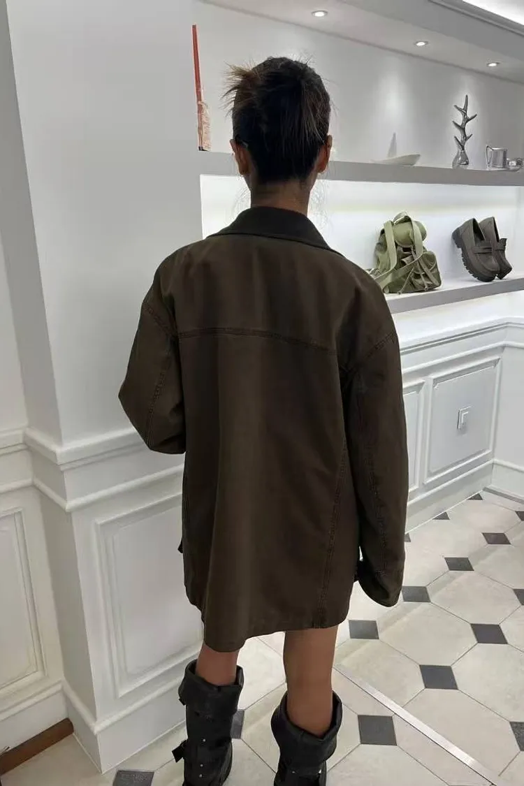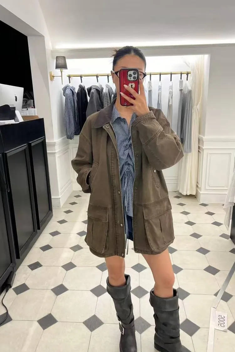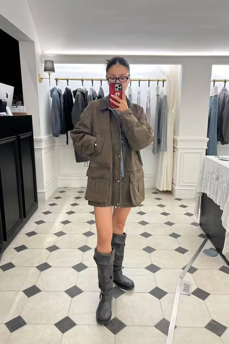 韓國連線款 百搭翻領拉鍊外套 中長款外套