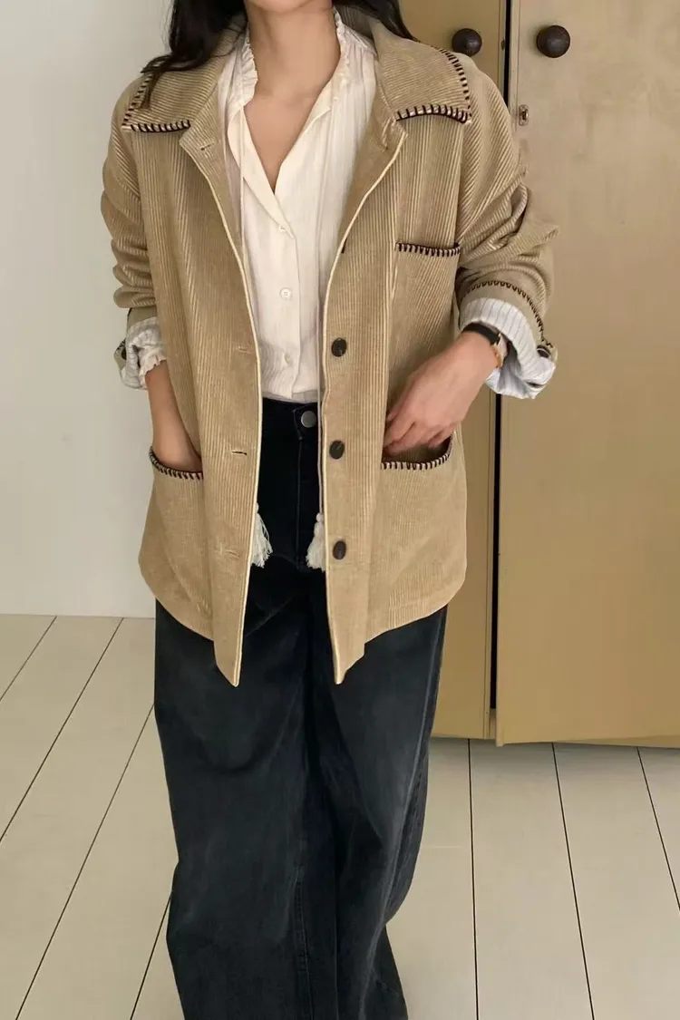 韓國連線款 燈心絨夾克外套 休閒百搭外套