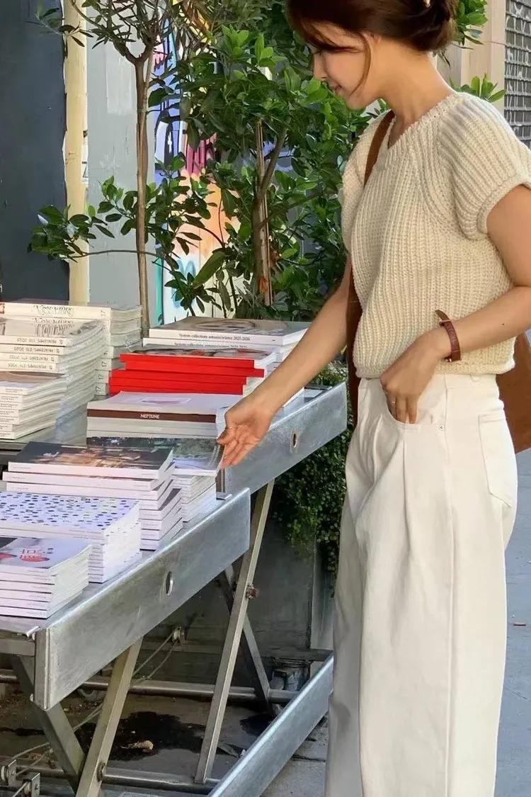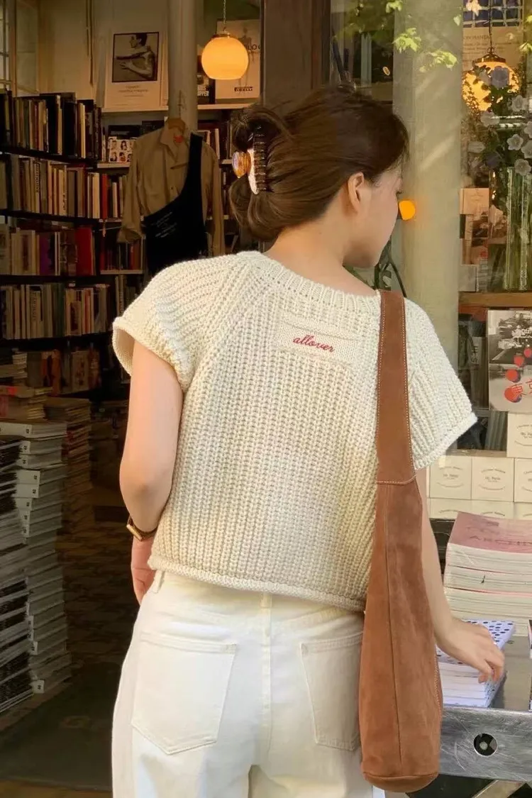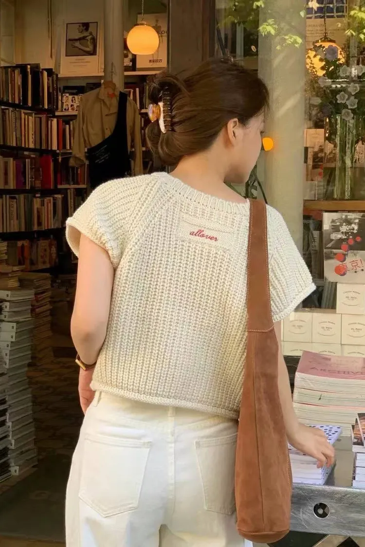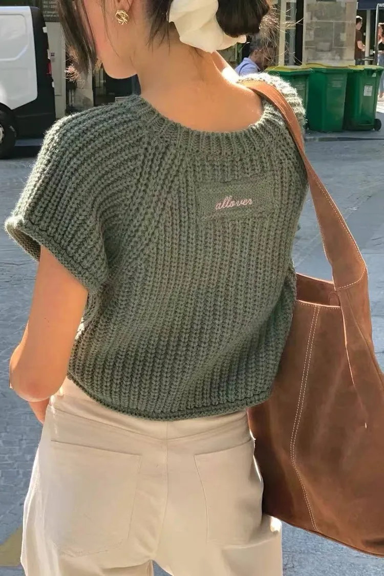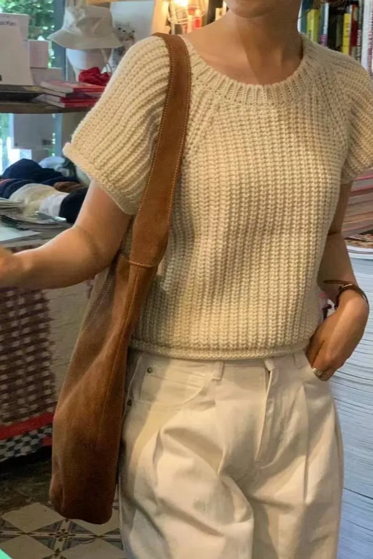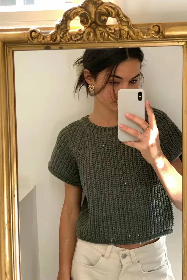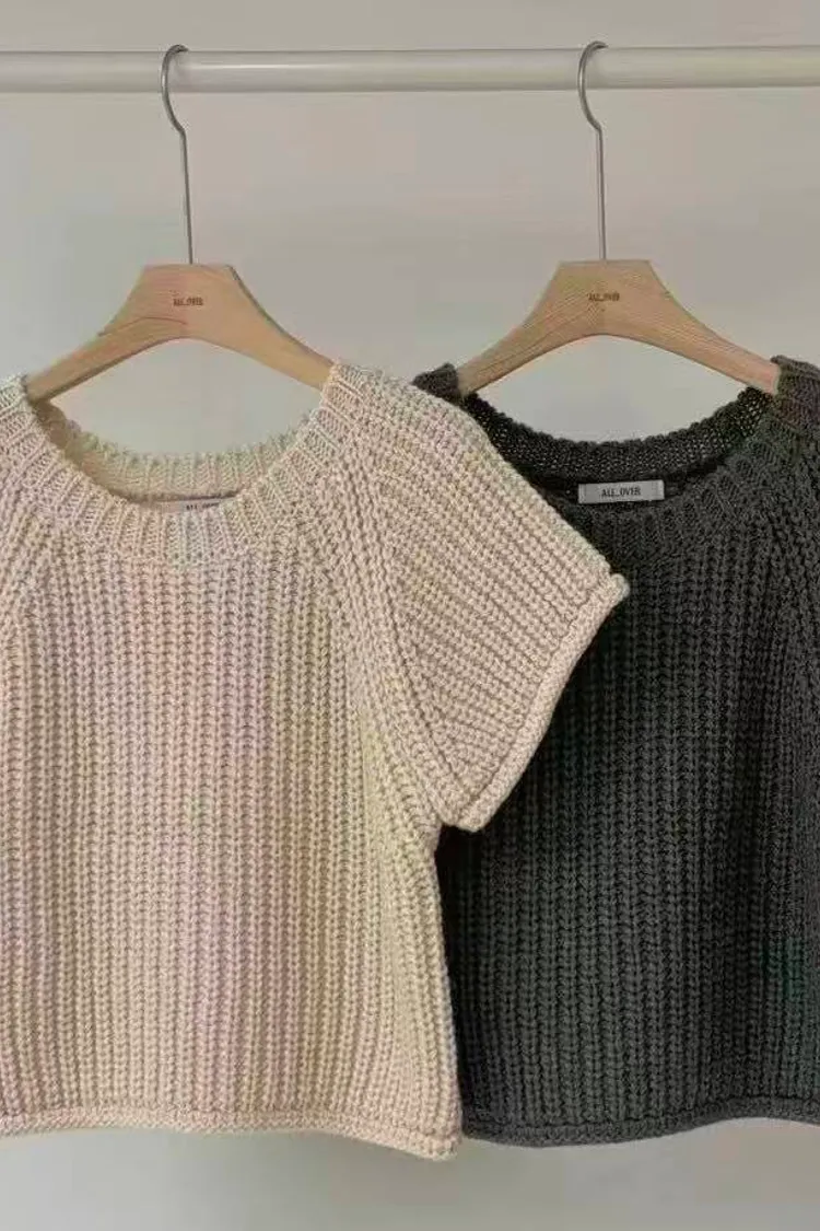 韓國代購 卷邊羊毛短袖針織上衣 T恤
