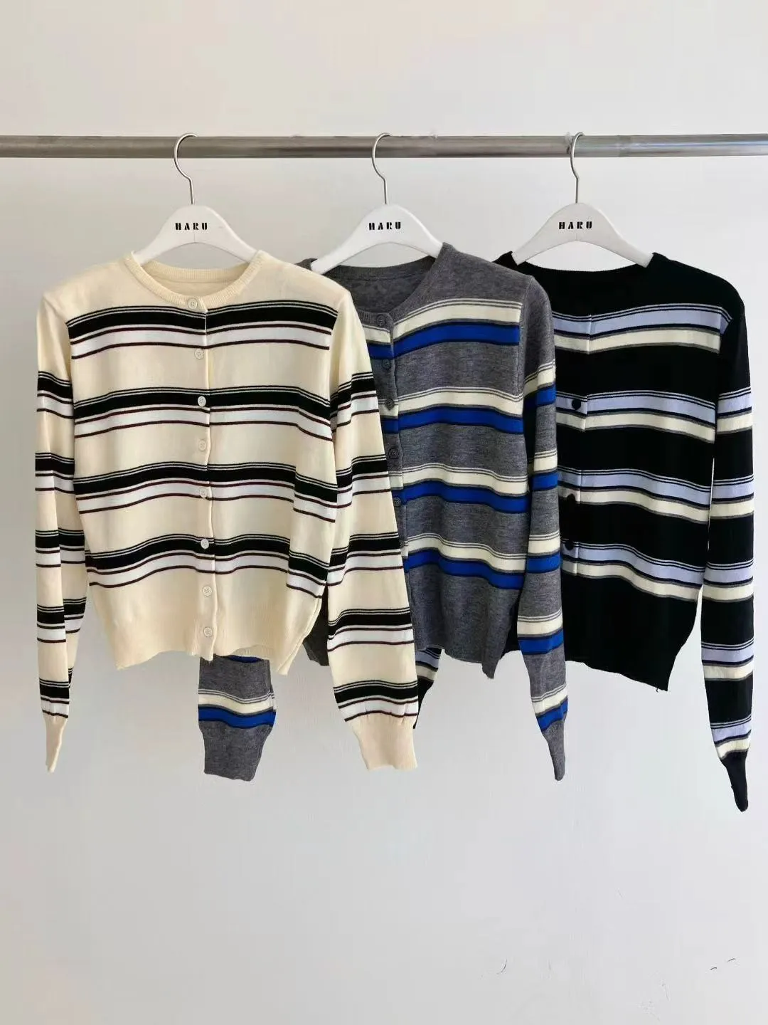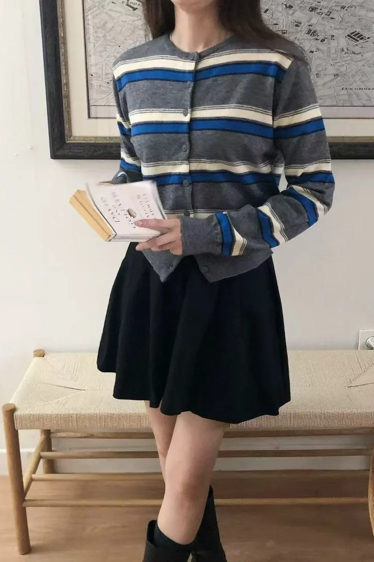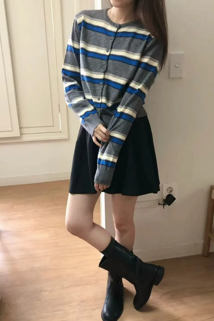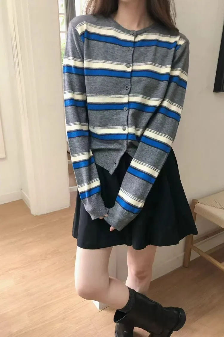 日常百搭條紋針織開衫 撞色條紋外套