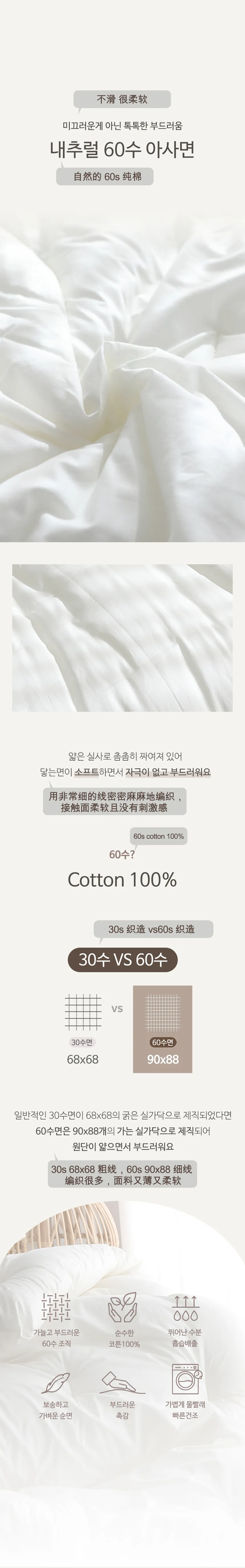 韓國枕頭套|奶油色系 60支高密度純棉 抗菌抗敏防蟎 PURE IS ROOM韓國寢具品牌