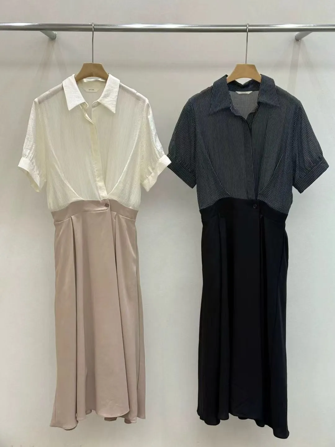 MATIERE IU歐膩家 襯衫拼接傘裙洋裝 上班族必備氣質款