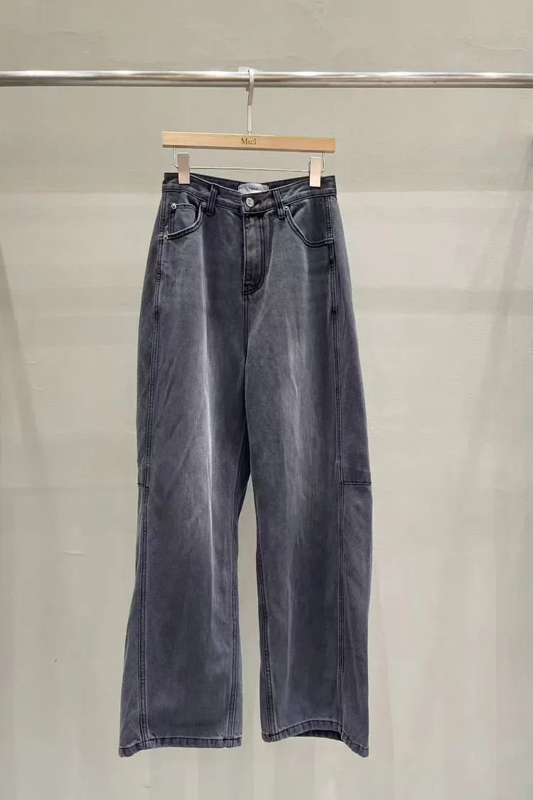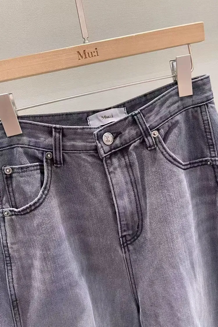 MUI 泰熙歐膩家 復古水洗灰直筒牛仔褲 休閒牛仔褲