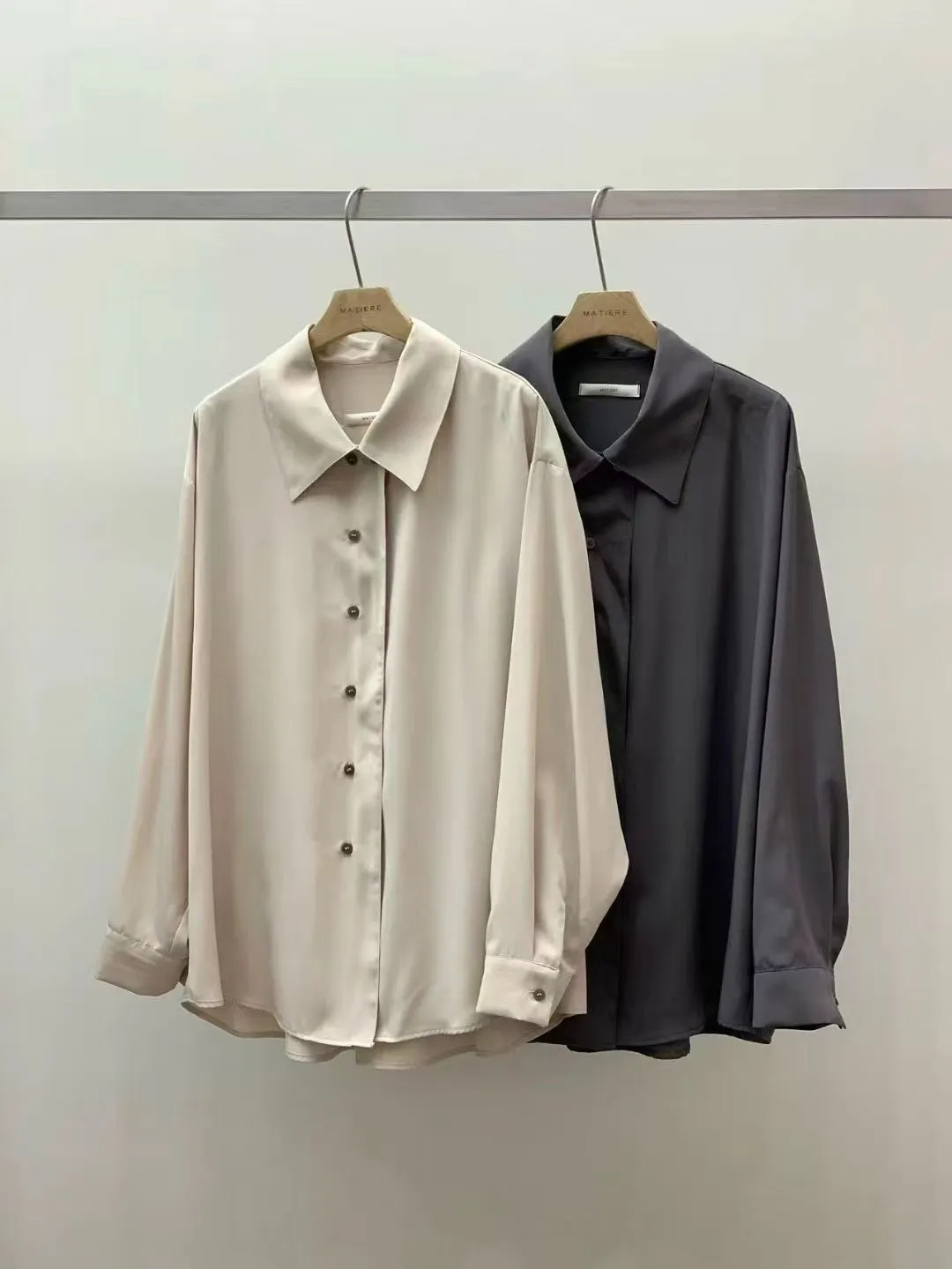 MATIERE IU歐膩家 高質感緞面垂墜襯衫