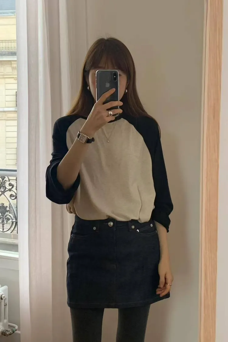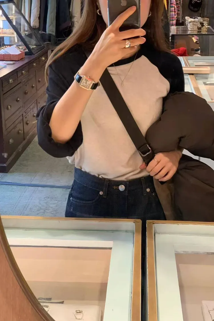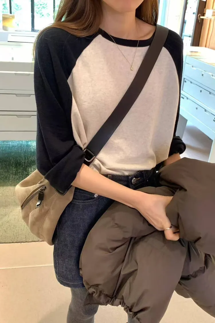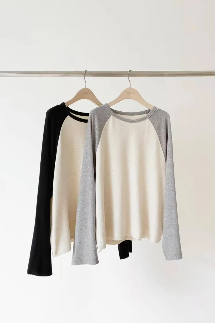 韓國代購 ounce 設計師品牌 拚色圓領長袖上衣 休閒T恤