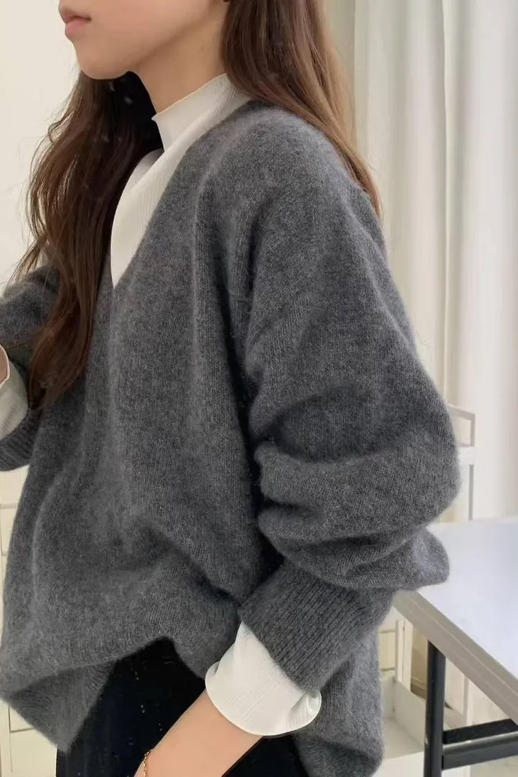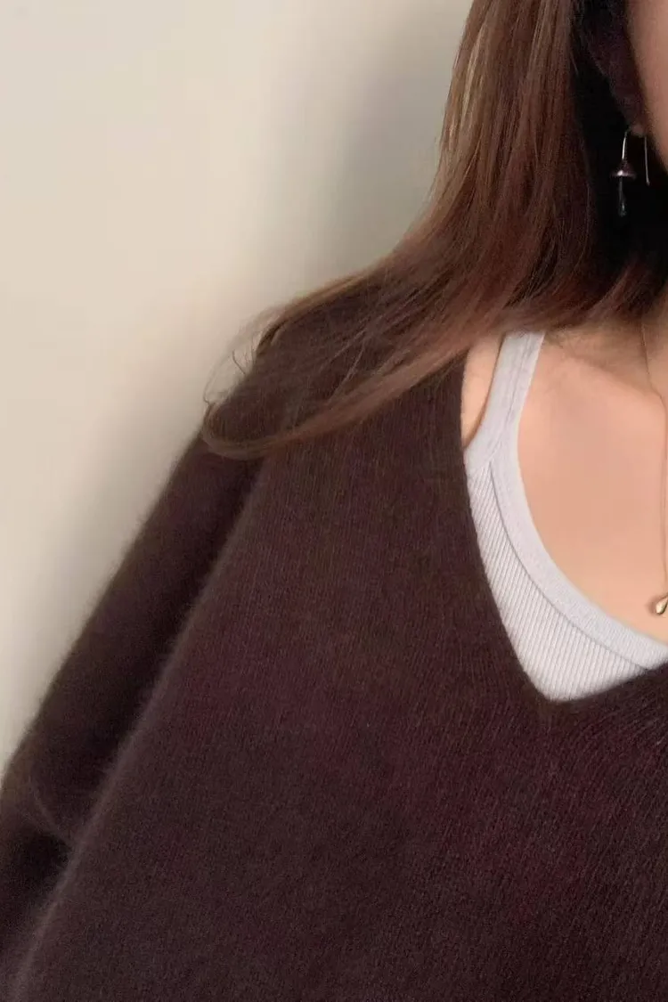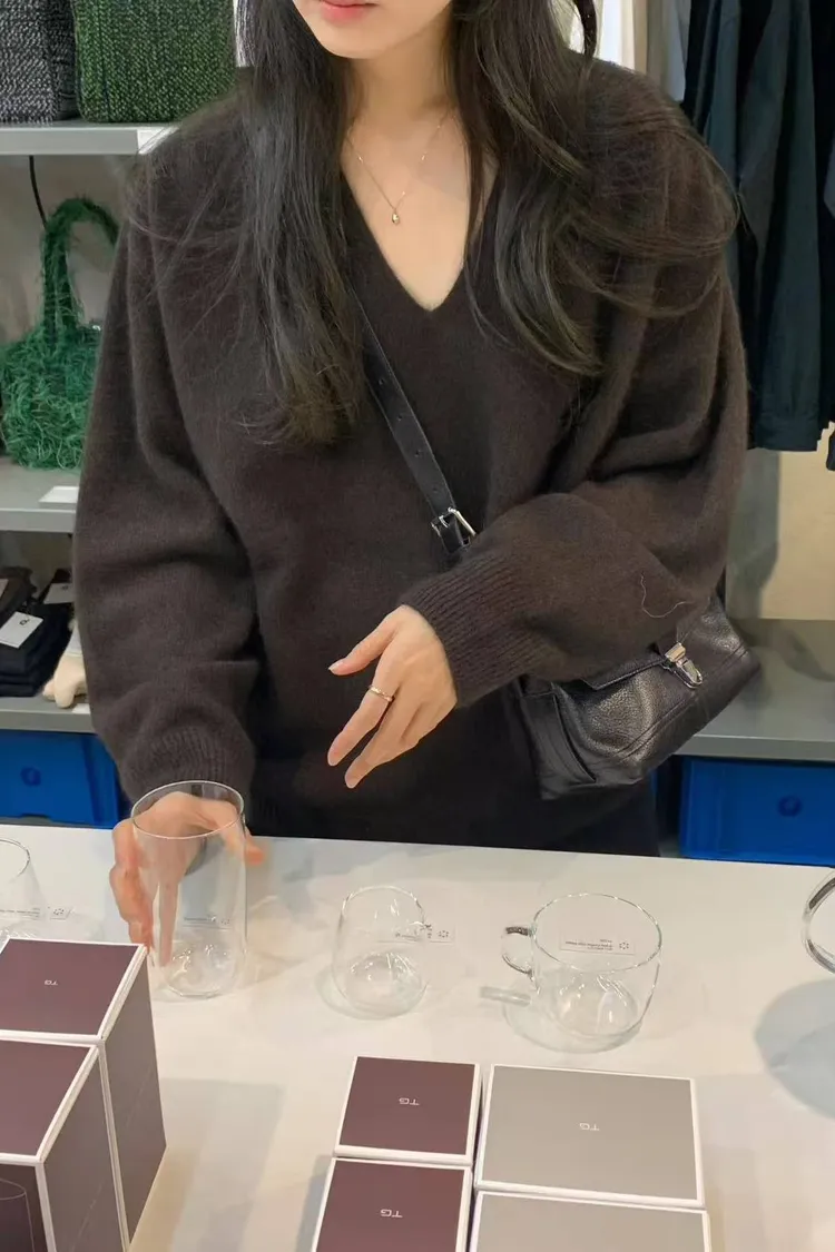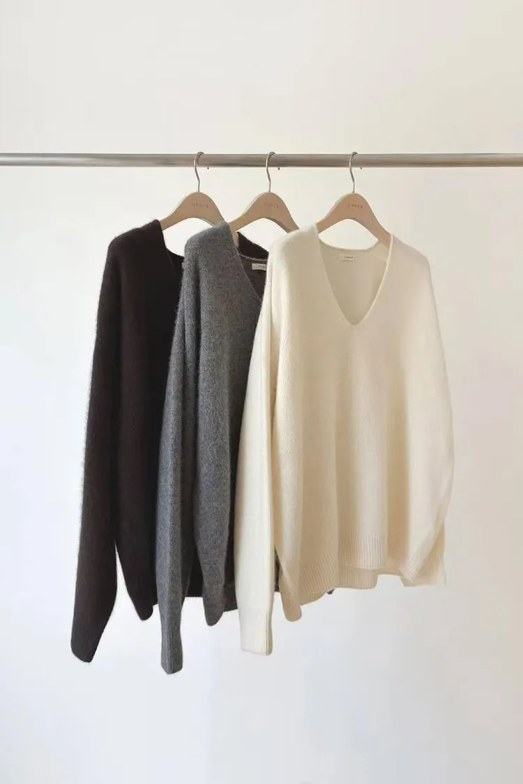 韓國代購 ounce 設計師品牌 浣熊毛v領毛衣 長袖上衣