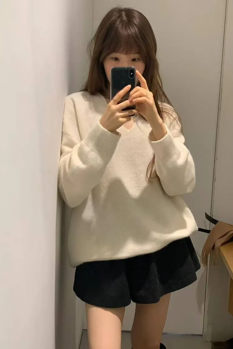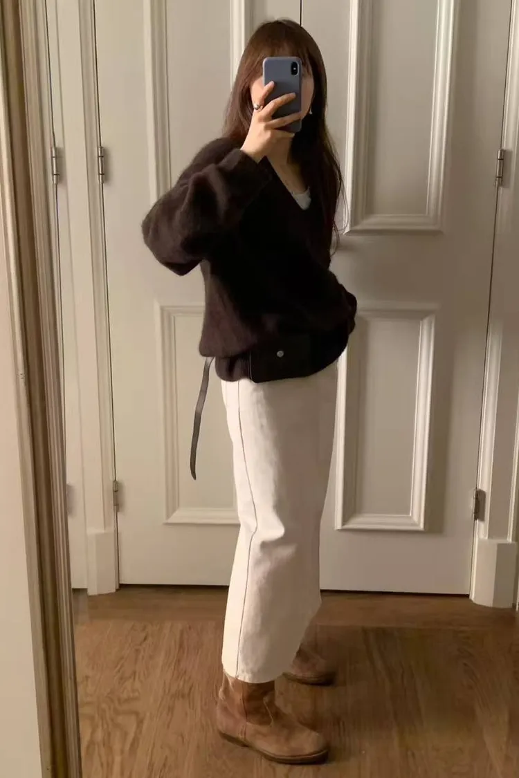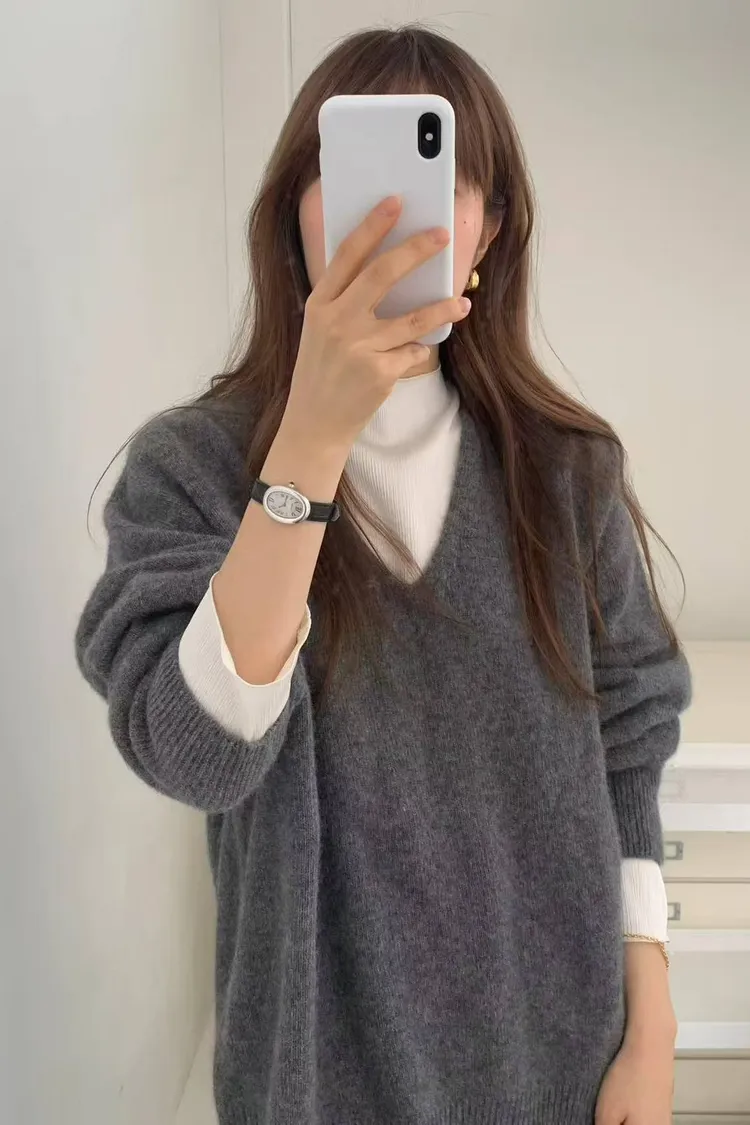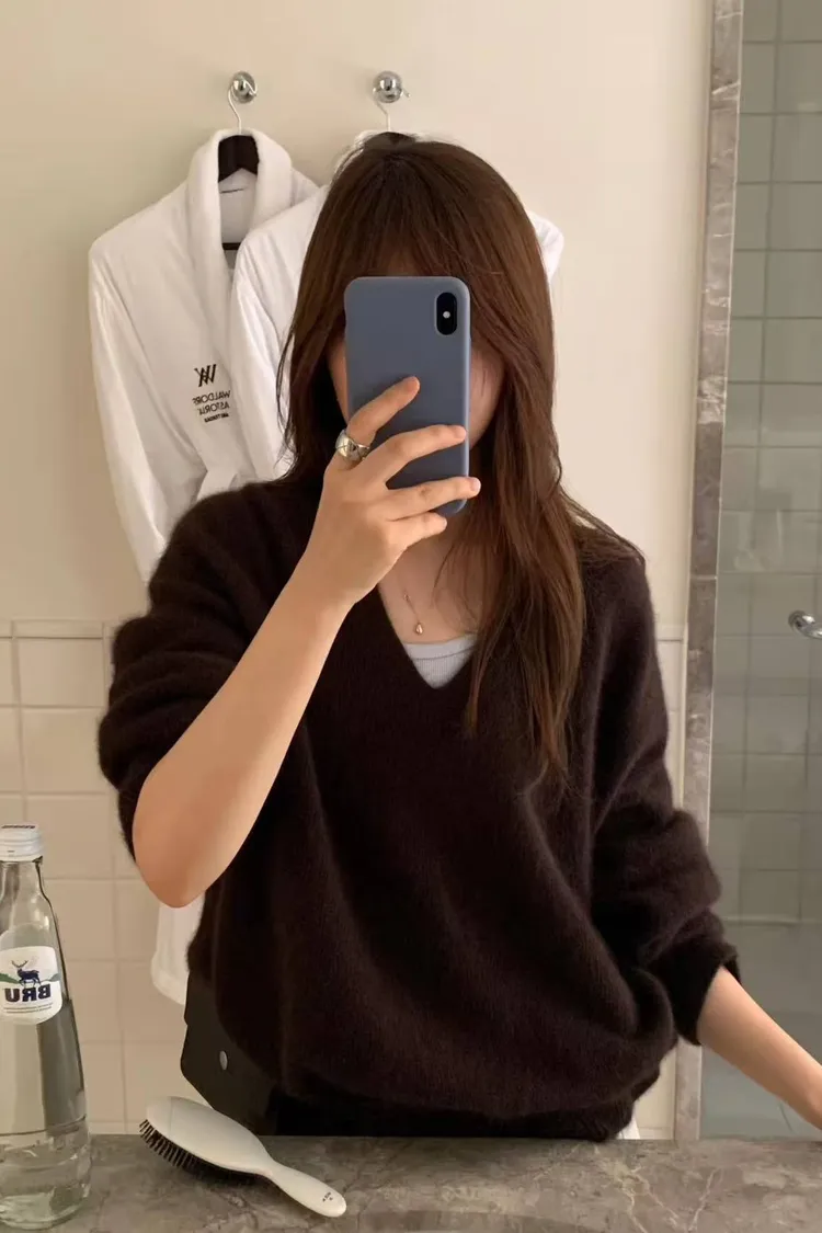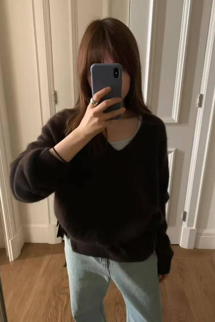 韓國代購 ounce 設計師品牌 浣熊毛v領毛衣 長袖上衣