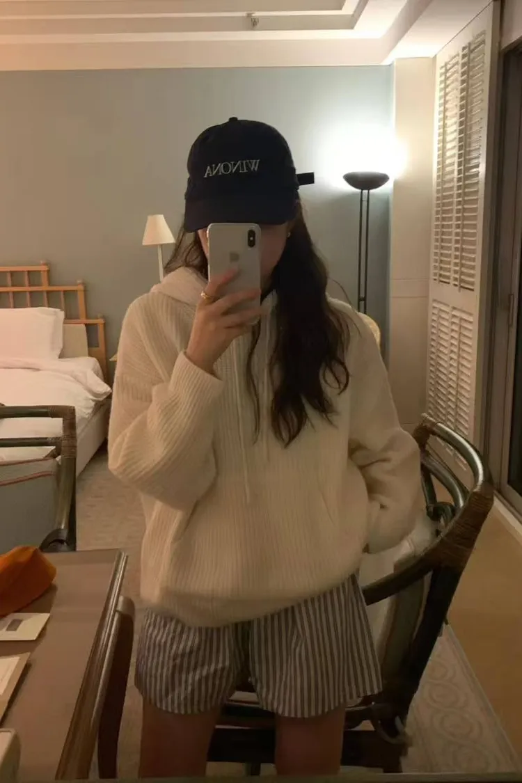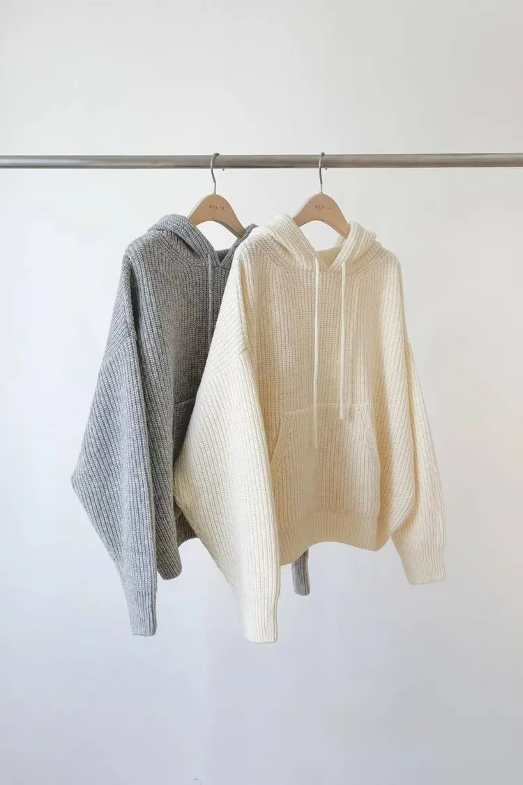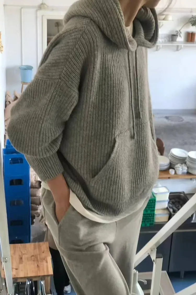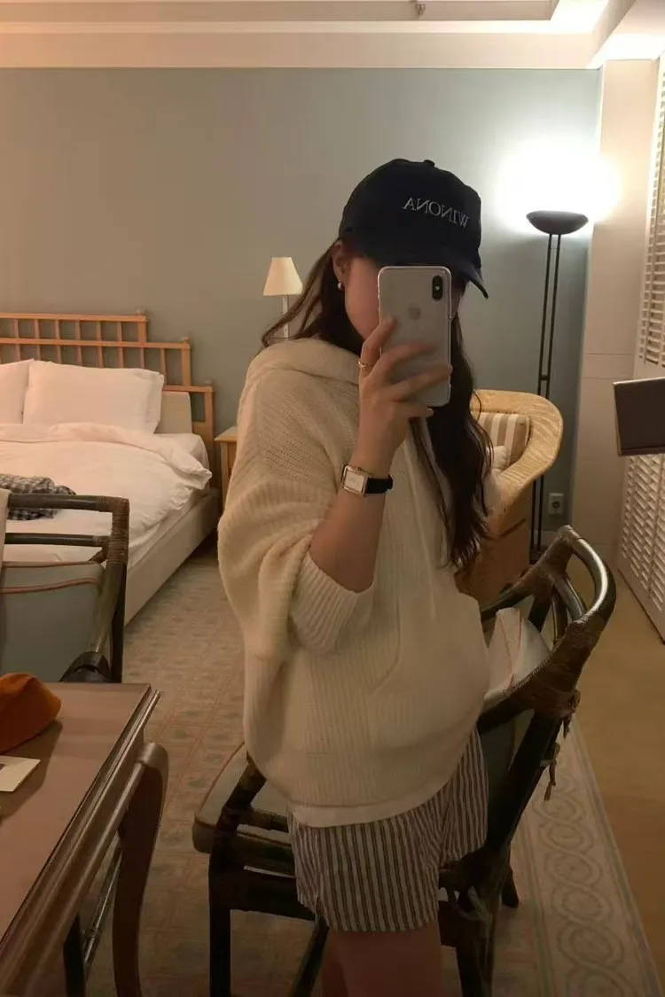 韓國代購 ounce 設計師品牌 連帽羊毛坑條上衣 帽T
