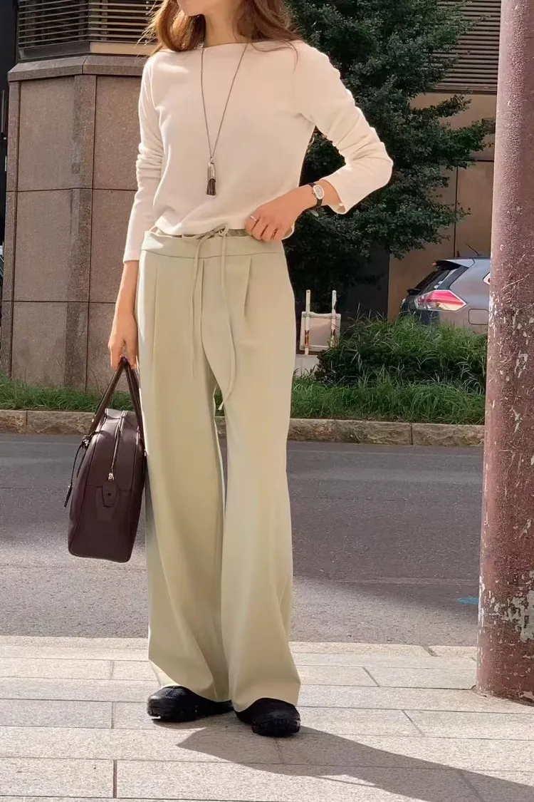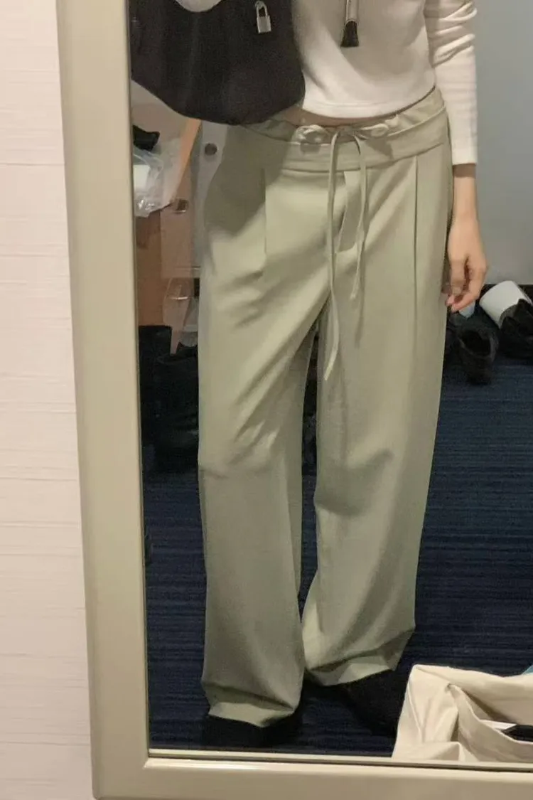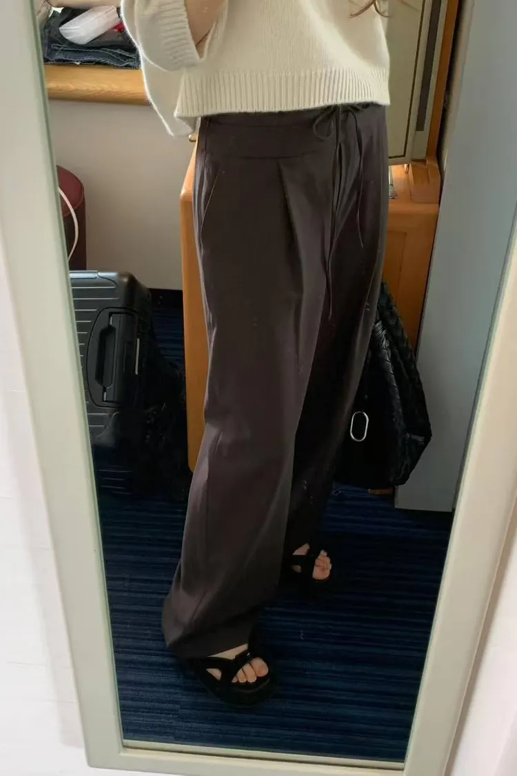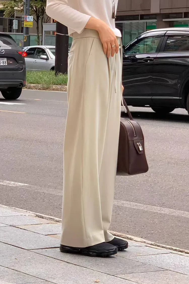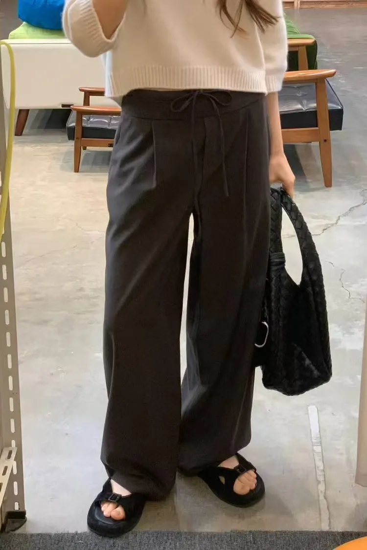 韓國代購 ounce 設計師品牌 鬆緊腰綁帶西裝長褲 休閒長褲 直筒落地褲