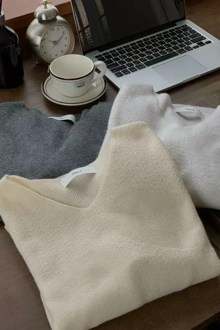 MUI 泰熙歐膩家 美麗諾羊毛V領毛衣