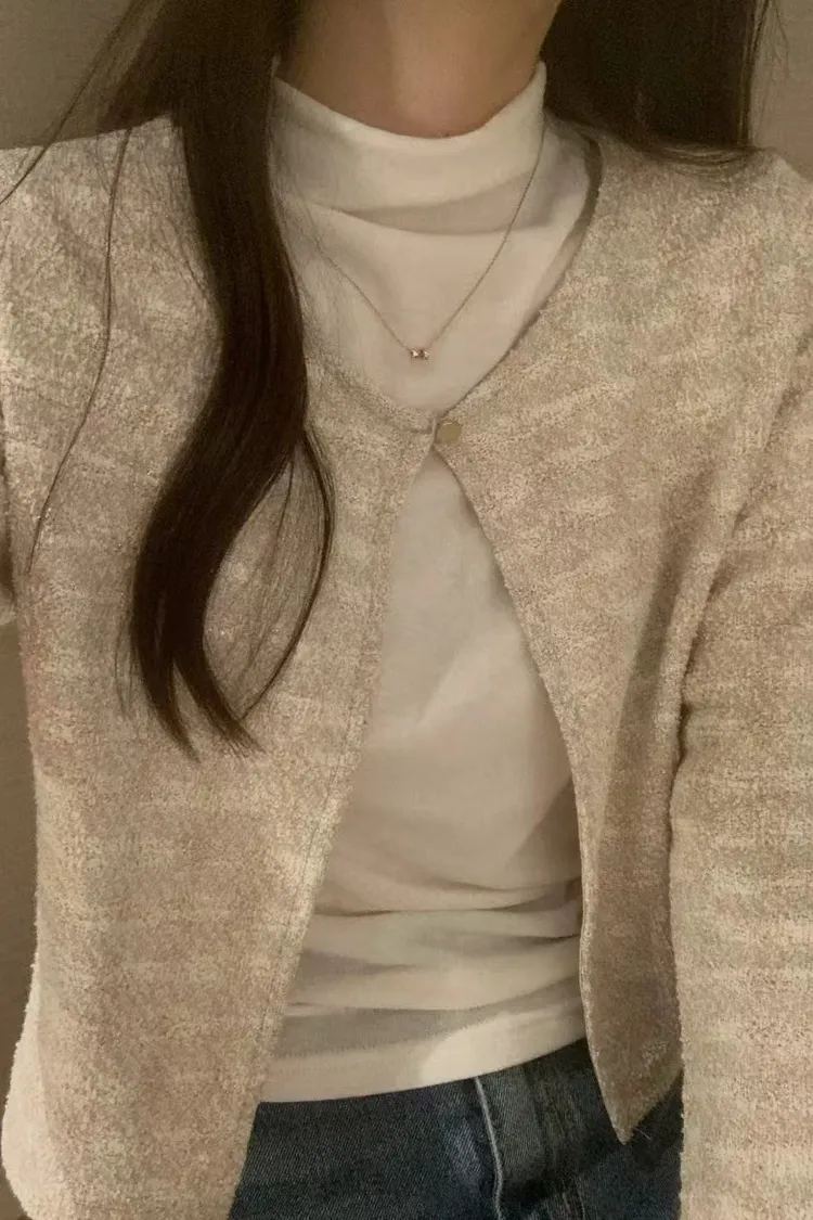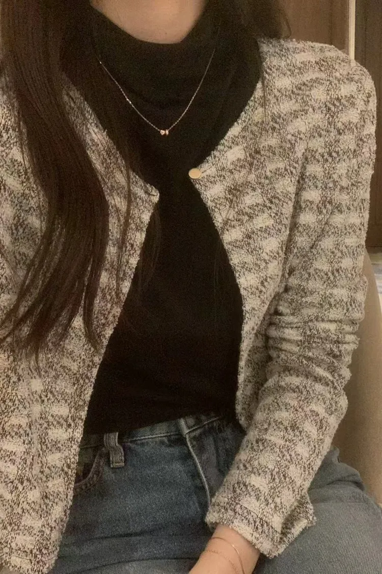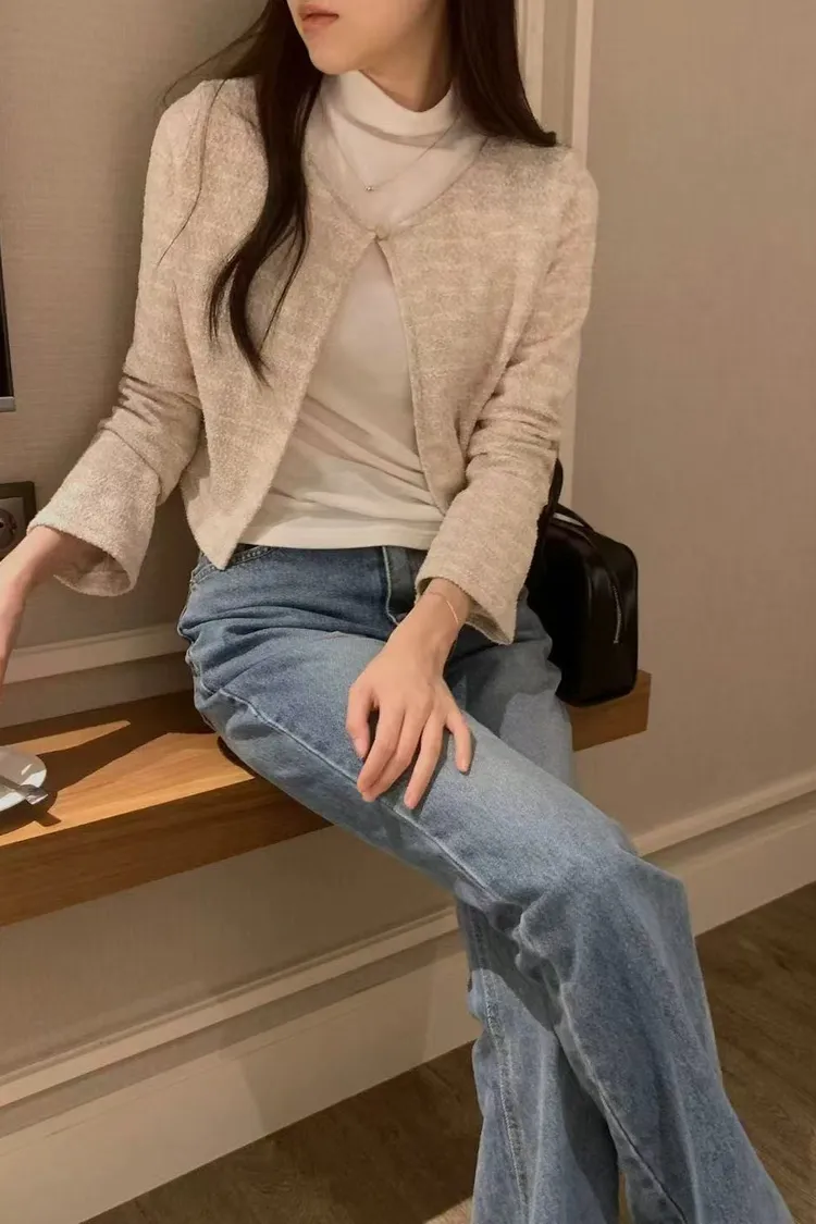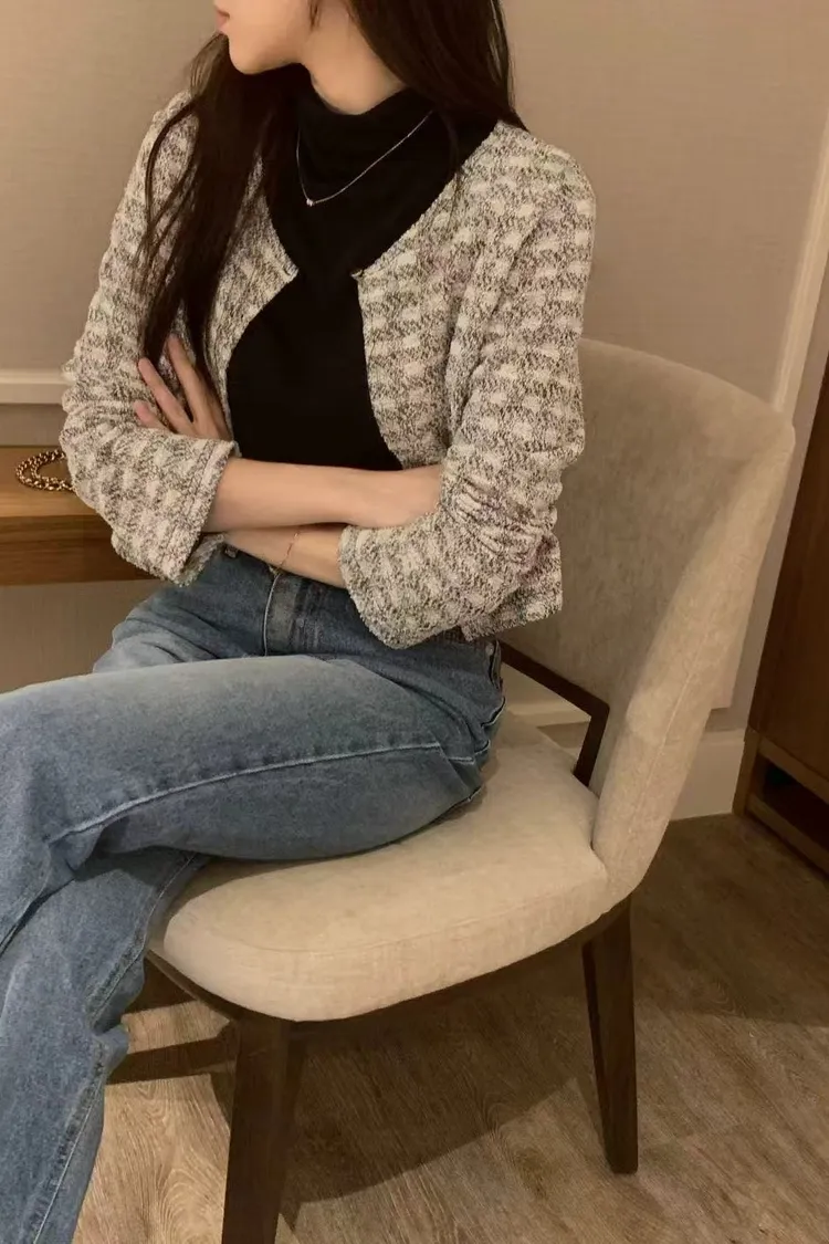 氣質粗花呢短版外套 圓領單釦設計感外套