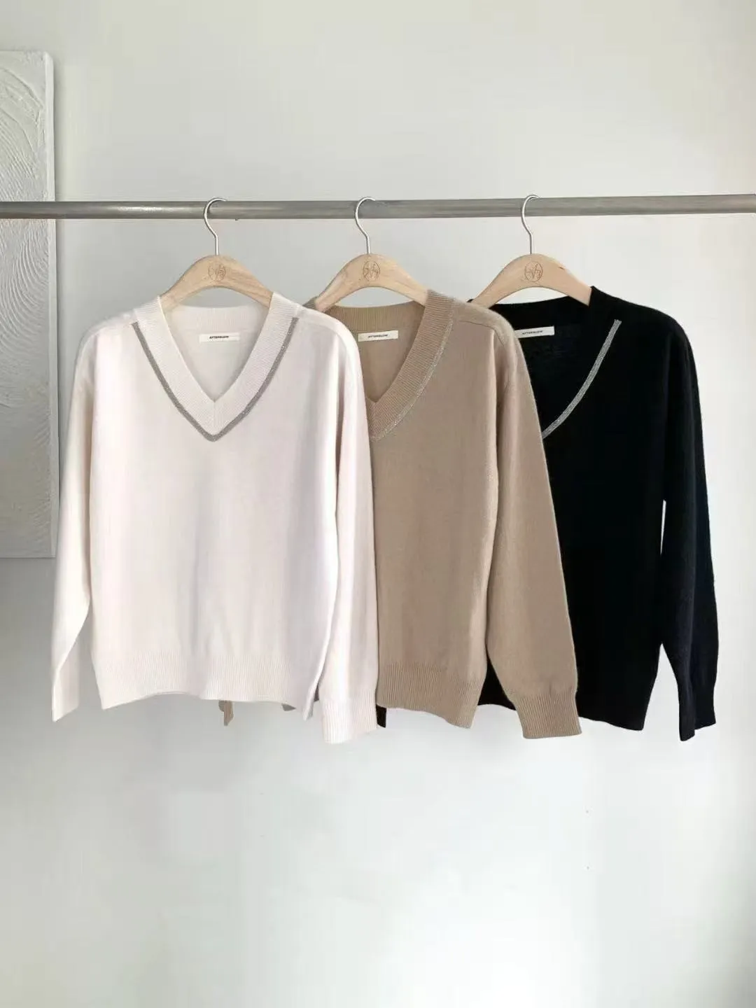金蔥V領針織羊毛毛衣 簡約質感上衣