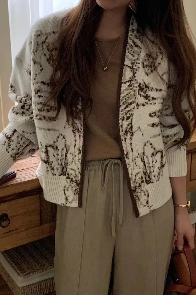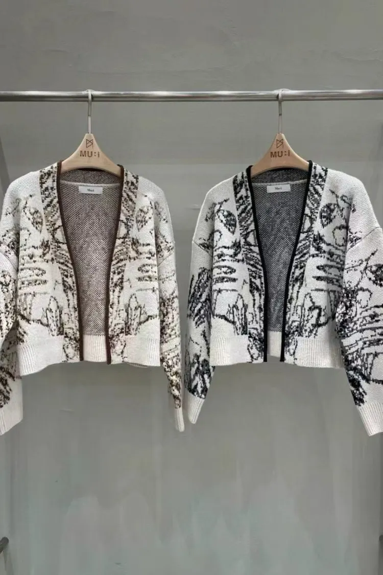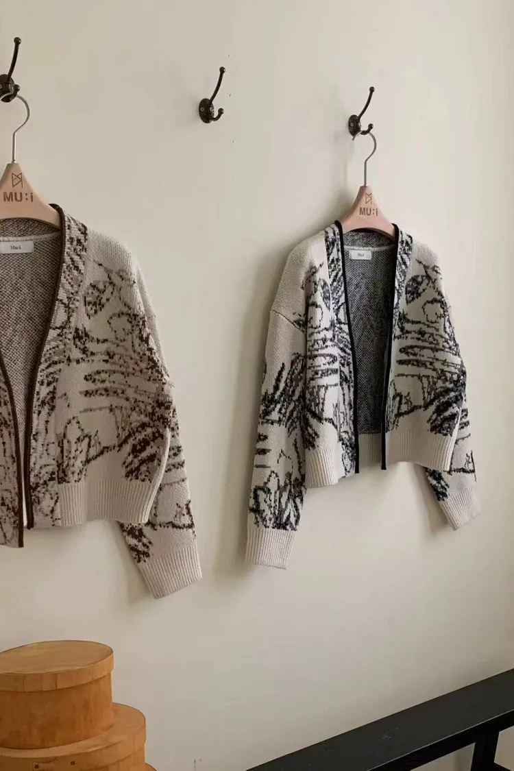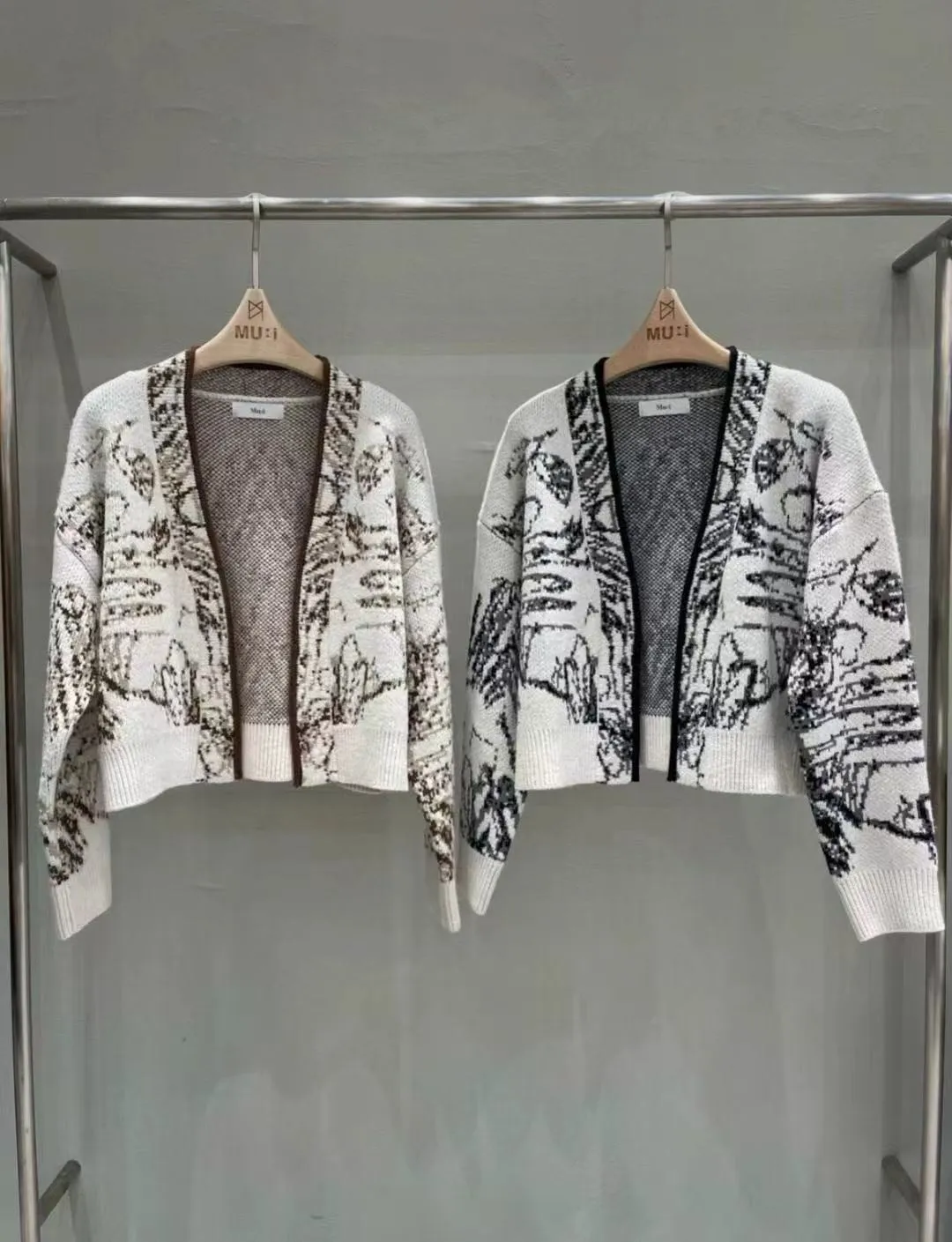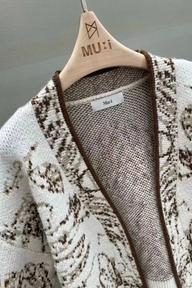 MUI 泰熙歐膩家 花紋短版羊毛毛衣外套