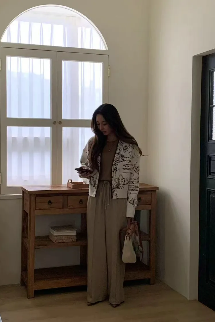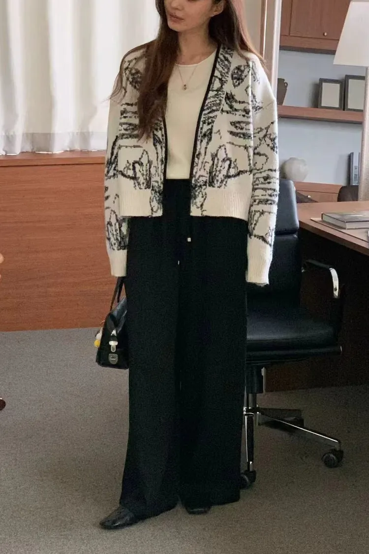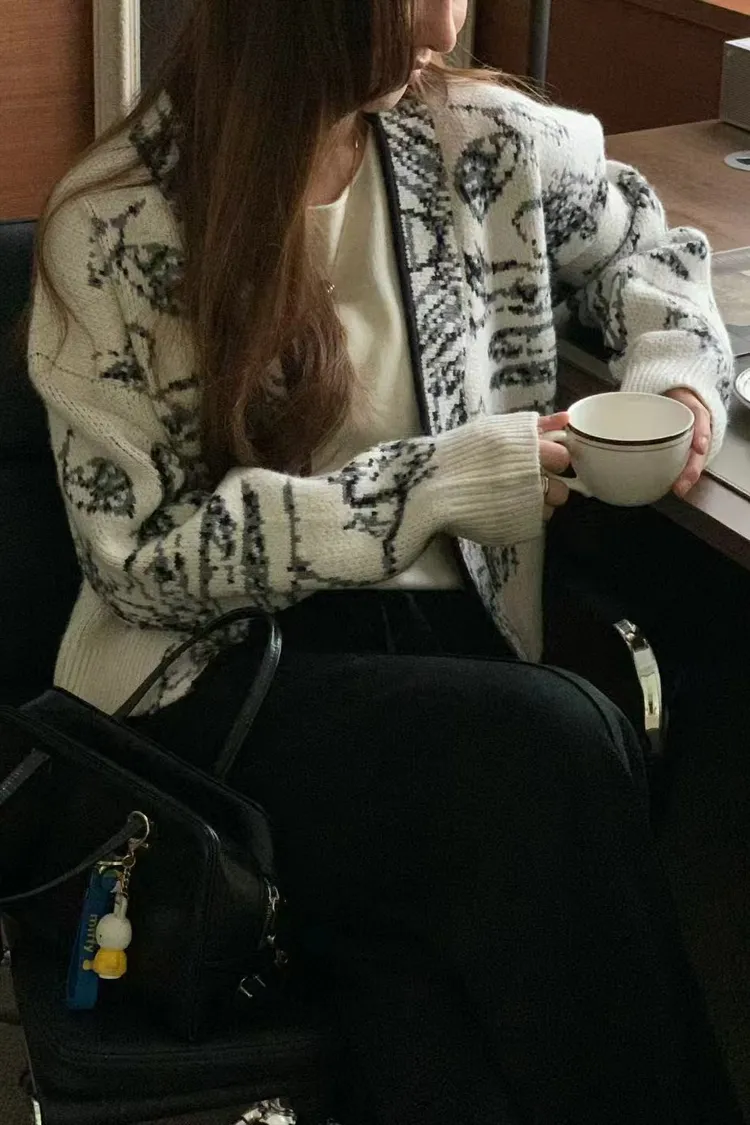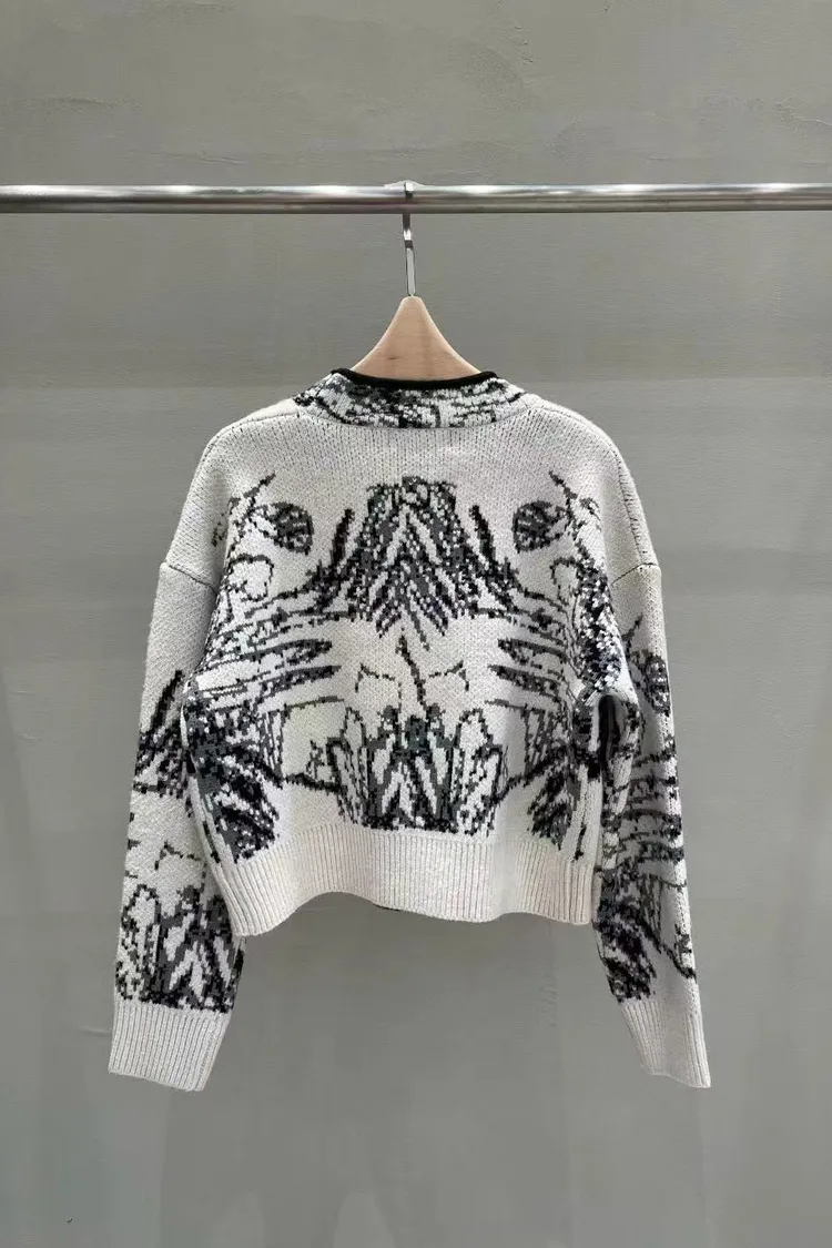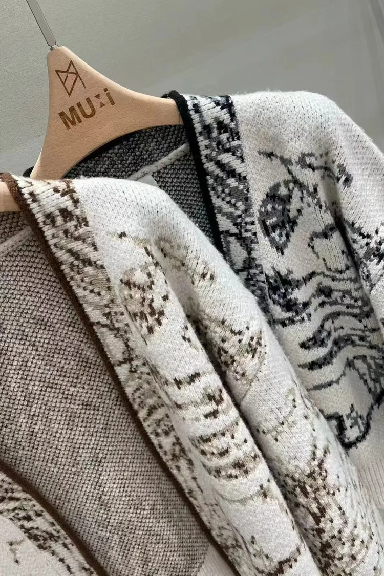 MUI 泰熙歐膩家 花紋短版羊毛毛衣外套