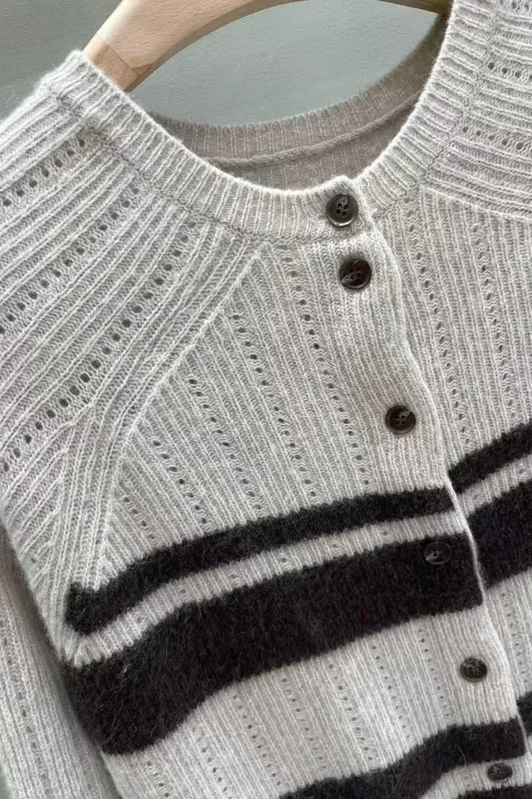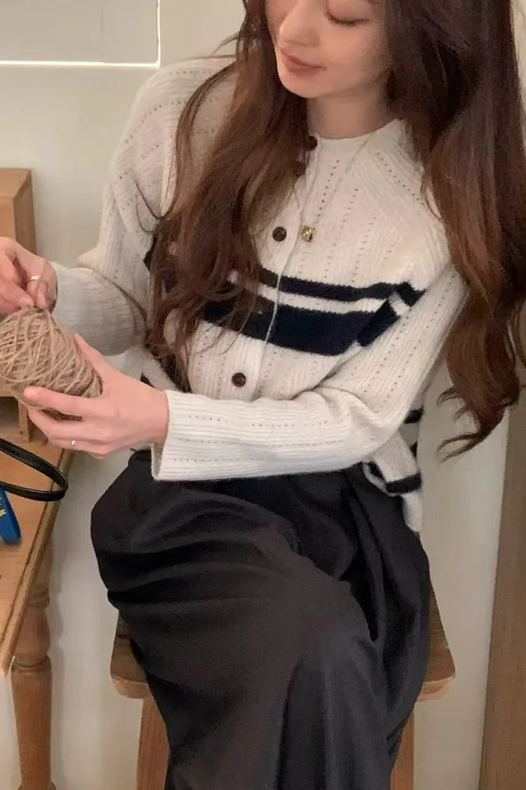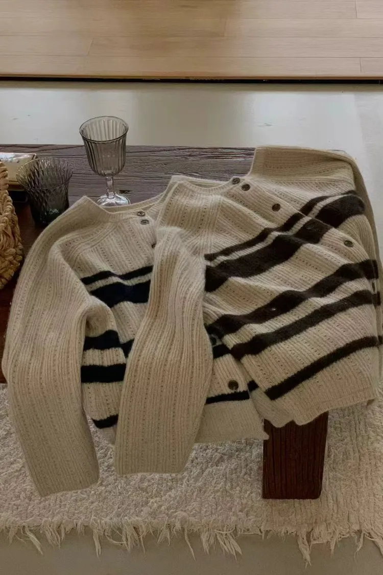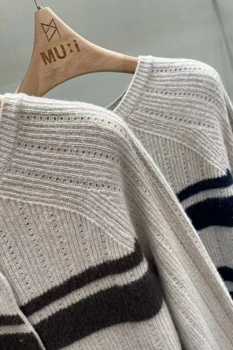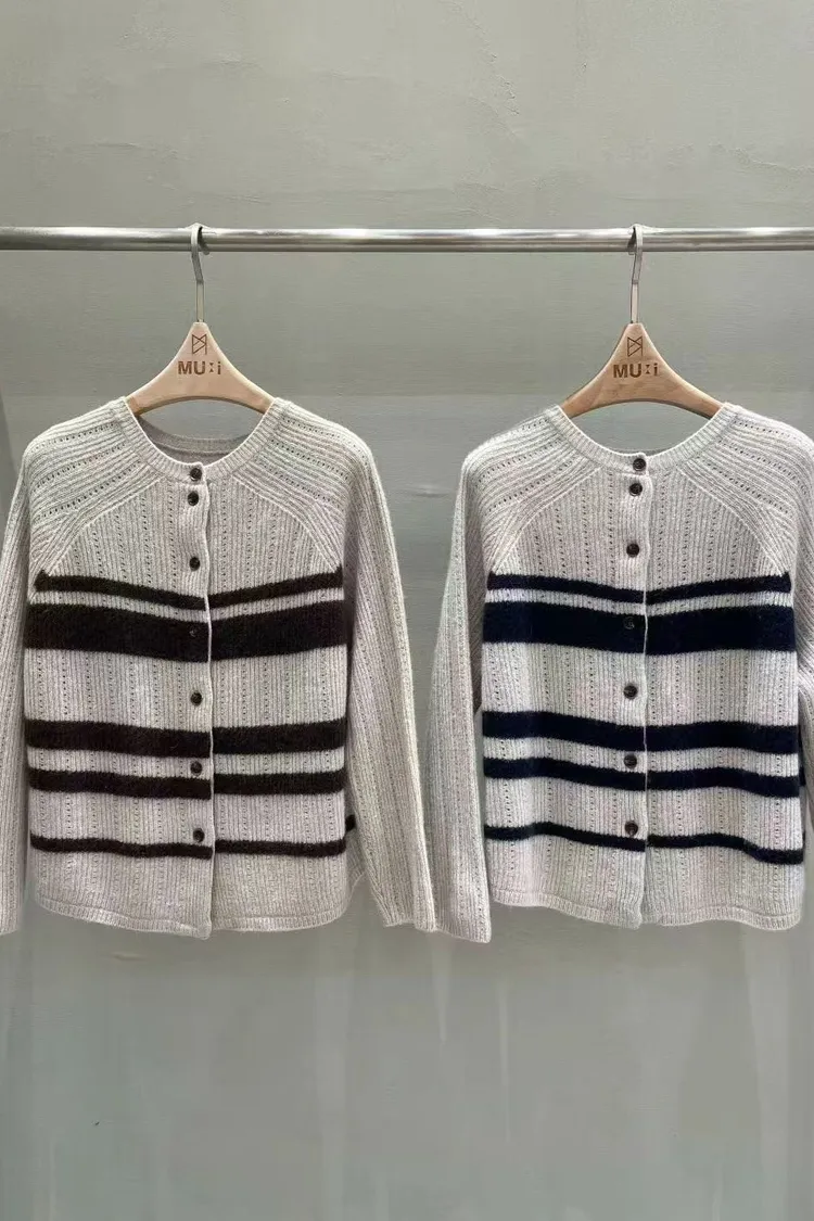 MUI 泰熙歐膩家 條紋針織上衣 羊毛開衫毛衣