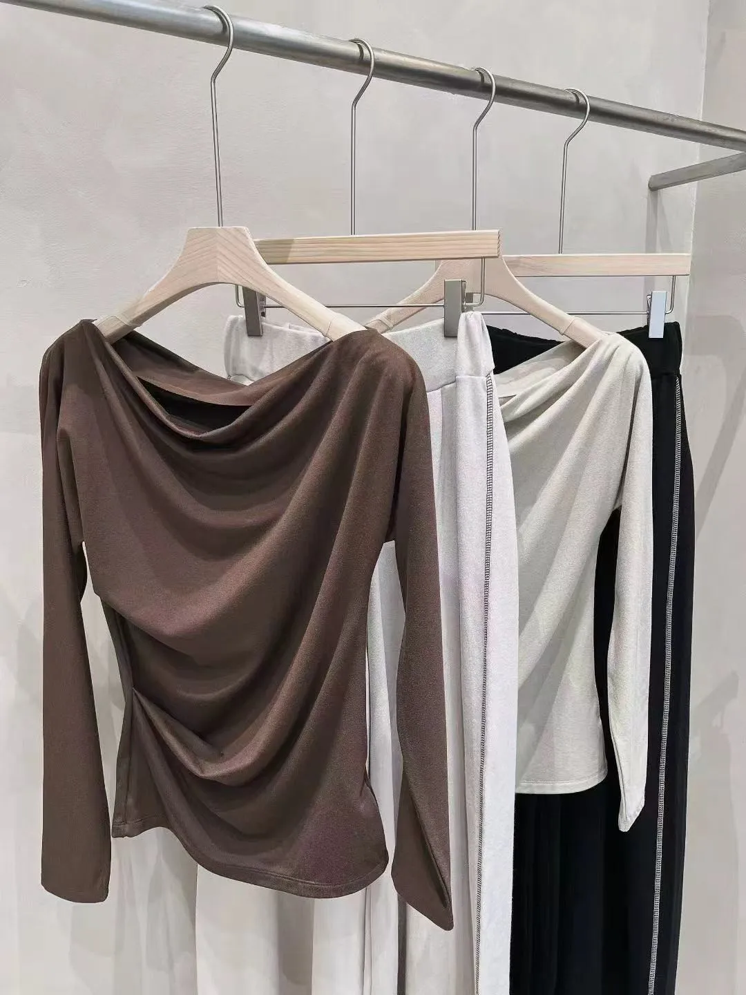 微露鎖骨長袖T 高腰寬褲套裝 百搭必收款