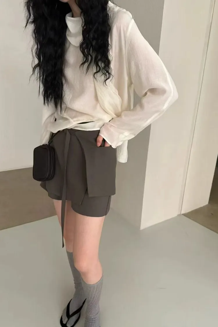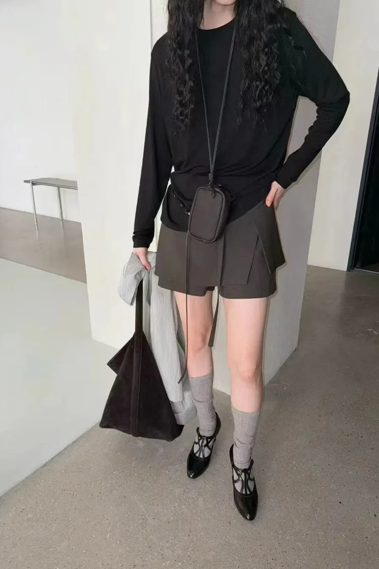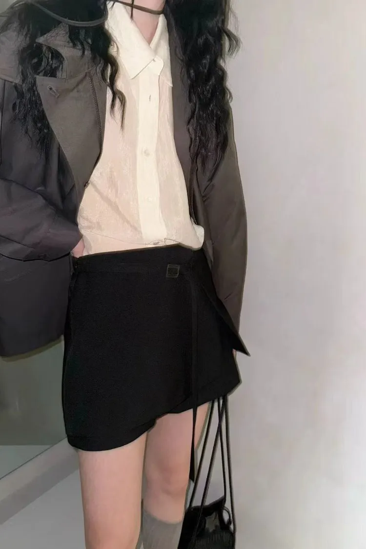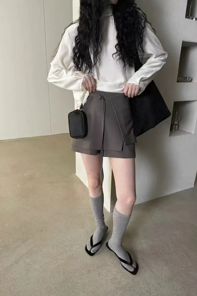 韓國連線 設計感西裝褲裙 顯瘦假兩件短褲