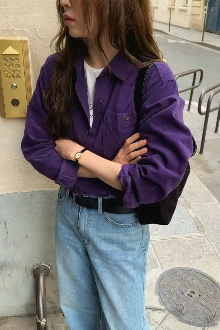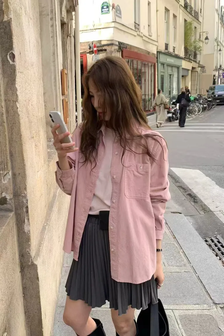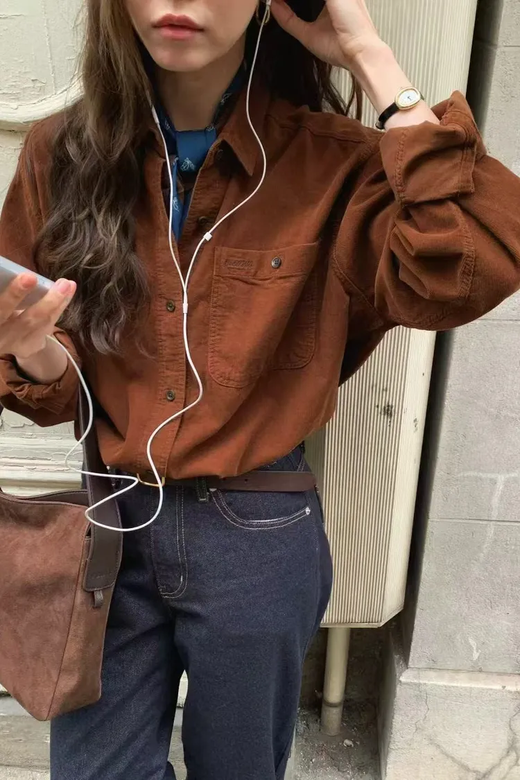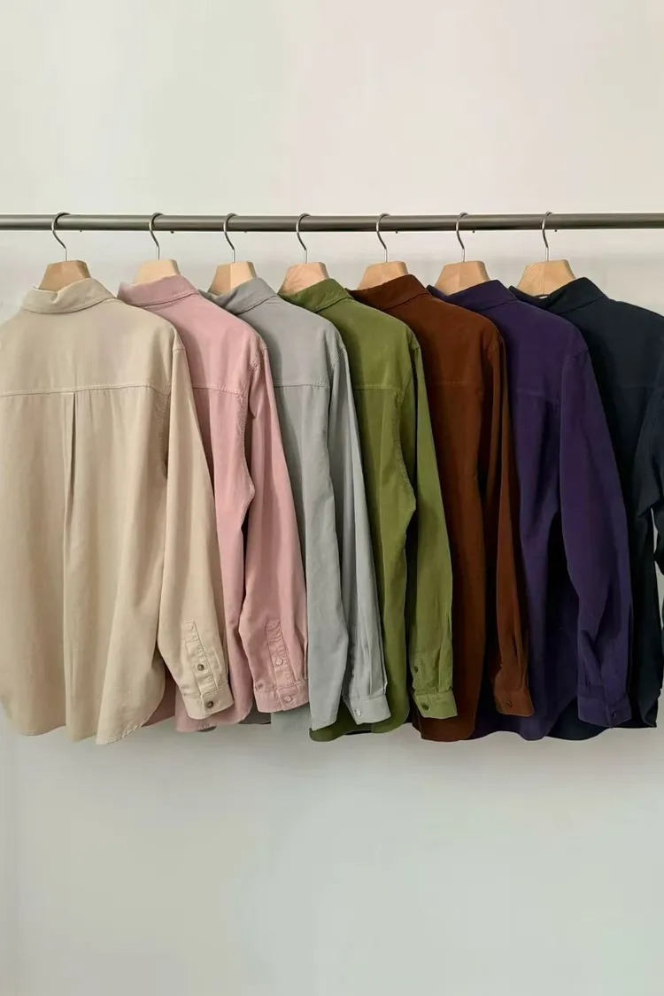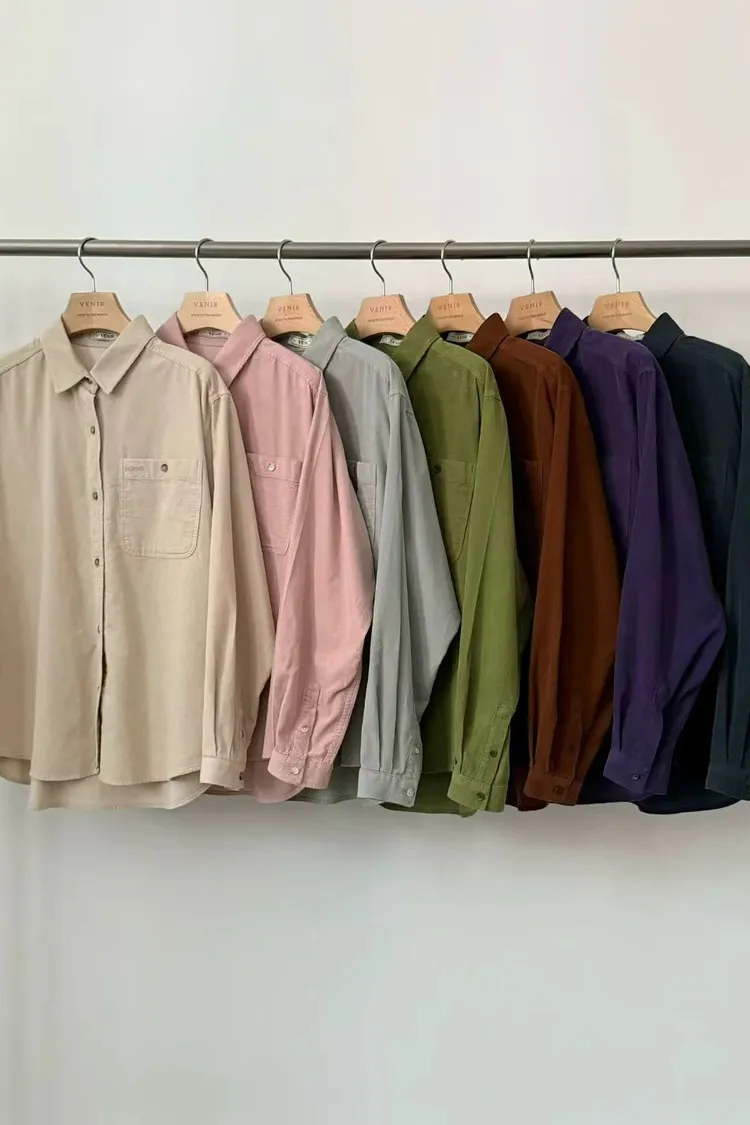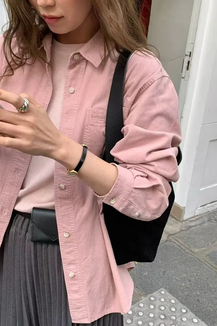 VENIR 秋冬多色百搭長袖襯衫 燈心絨襯衫 蜜桃絨襯衫粉色超美