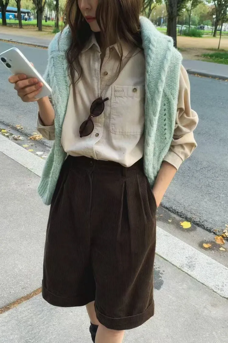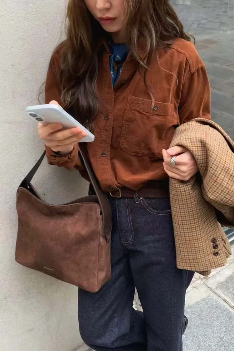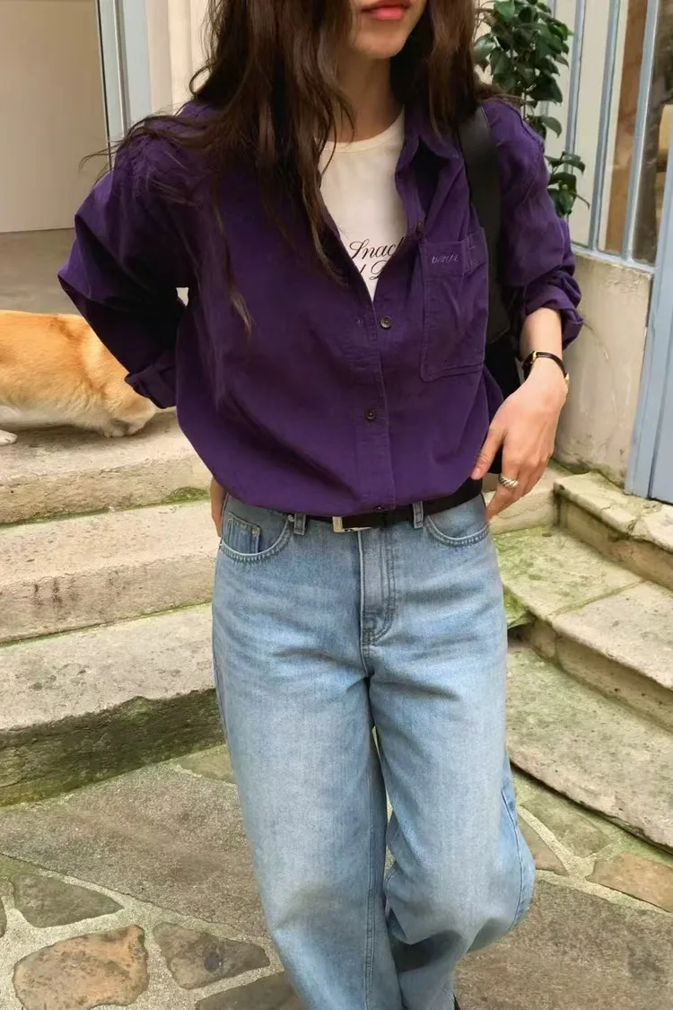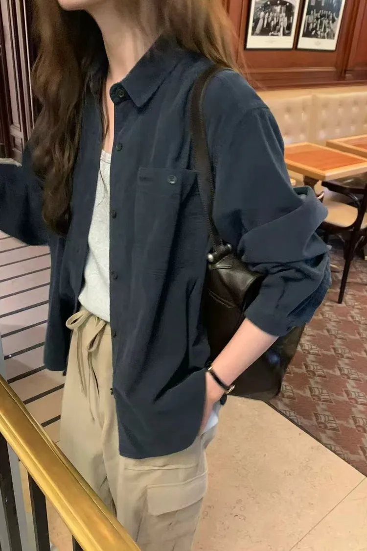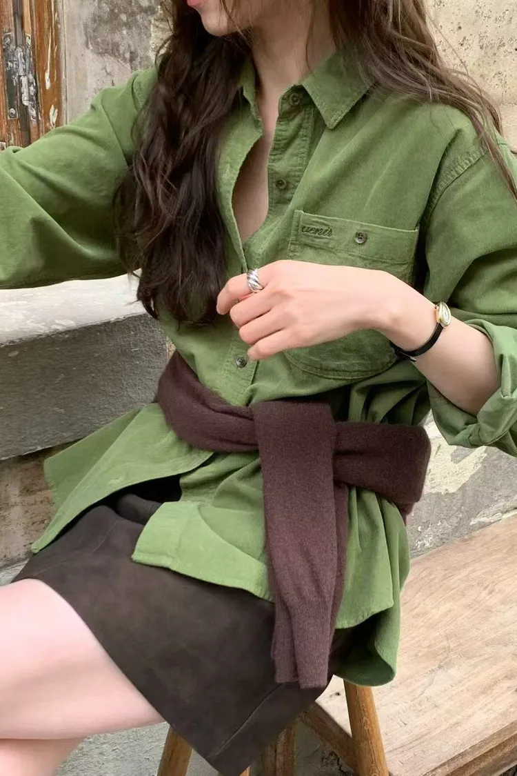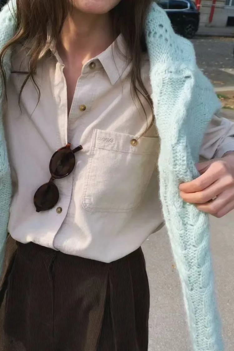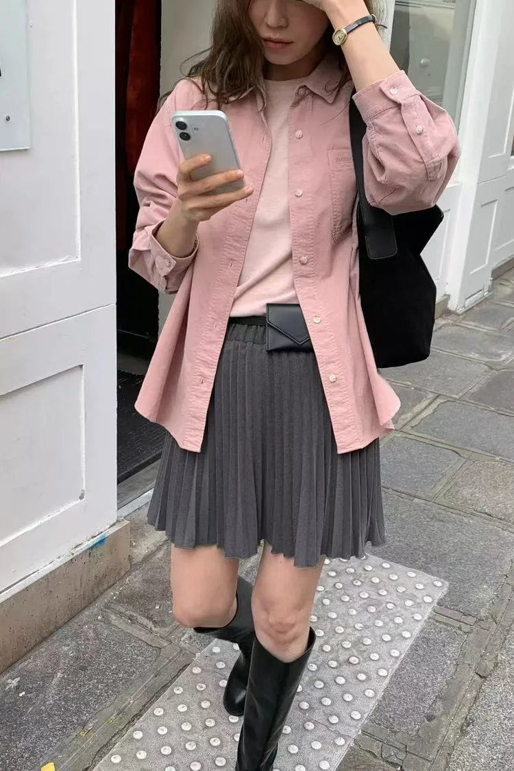 VENIR 秋冬多色百搭長袖襯衫 燈心絨襯衫 蜜桃絨襯衫粉色超美