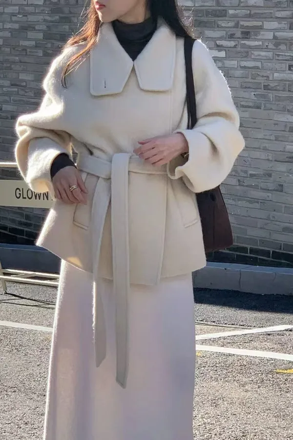 韓國連線設計師款 立領手工羊毛外套 短版羊毛大衣100%