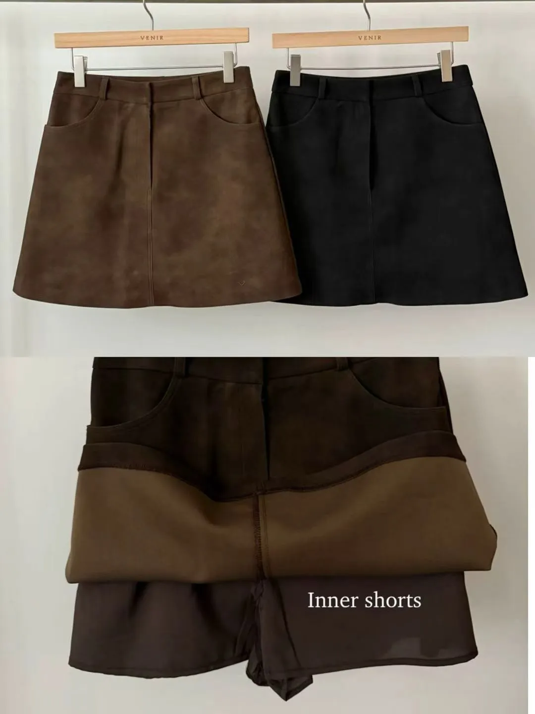 韓國連線款 顯瘦麂皮裙 A字麂皮短裙 高腰短裙