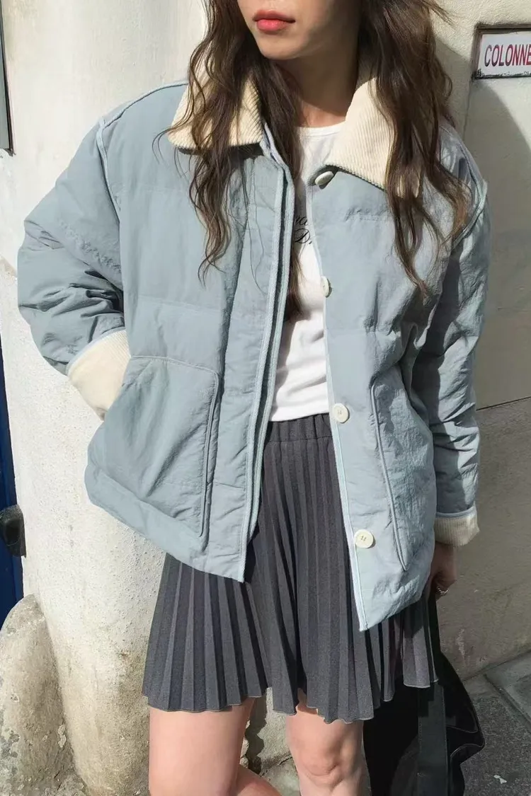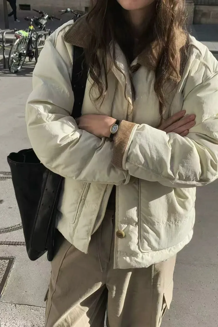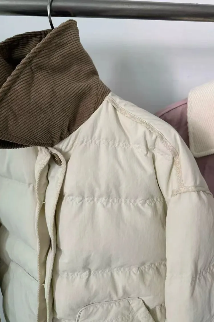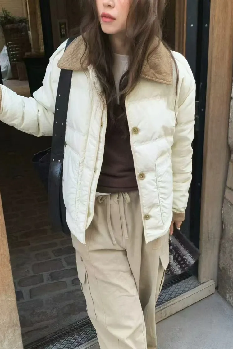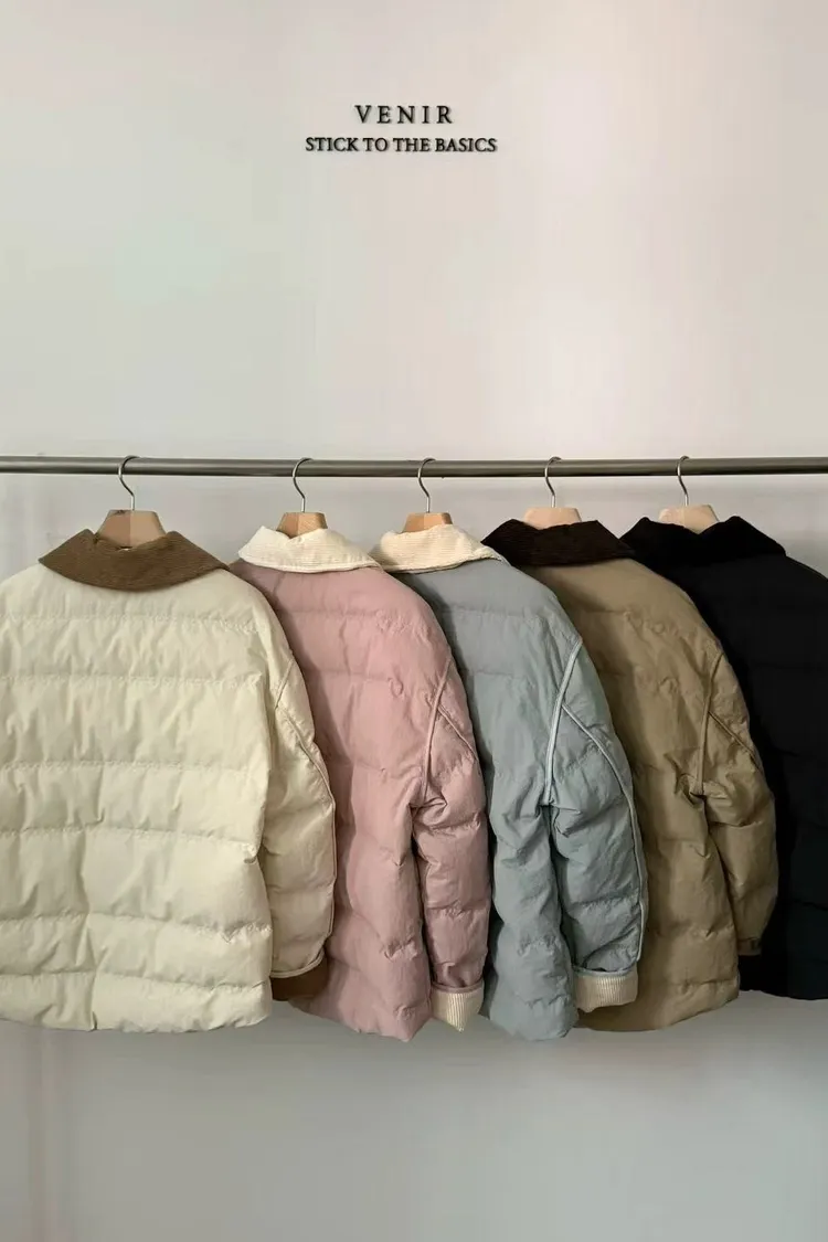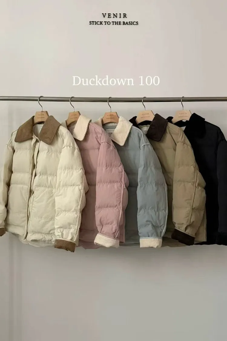 VENIR 燈芯絨領100%鴨絨羽絨外套