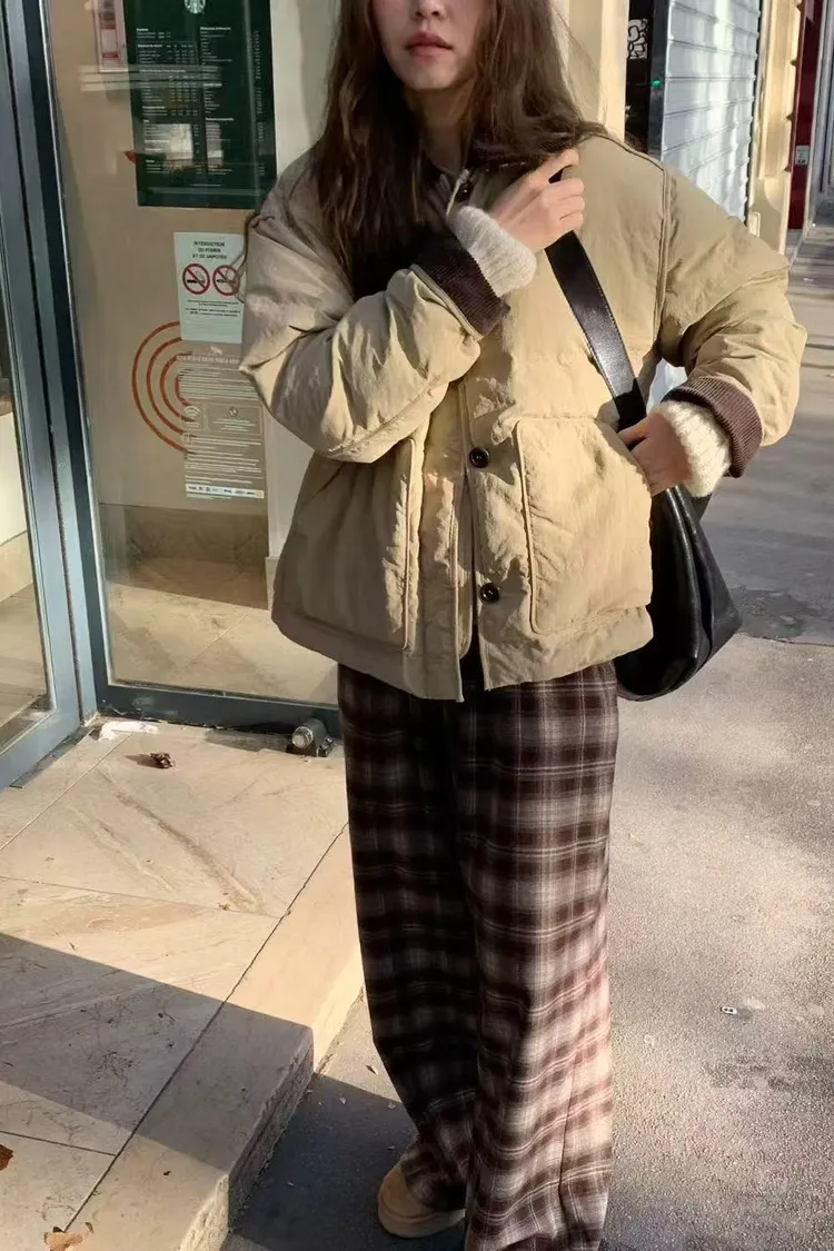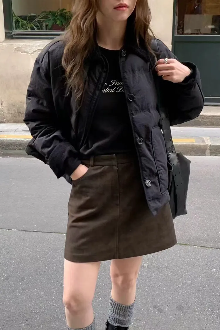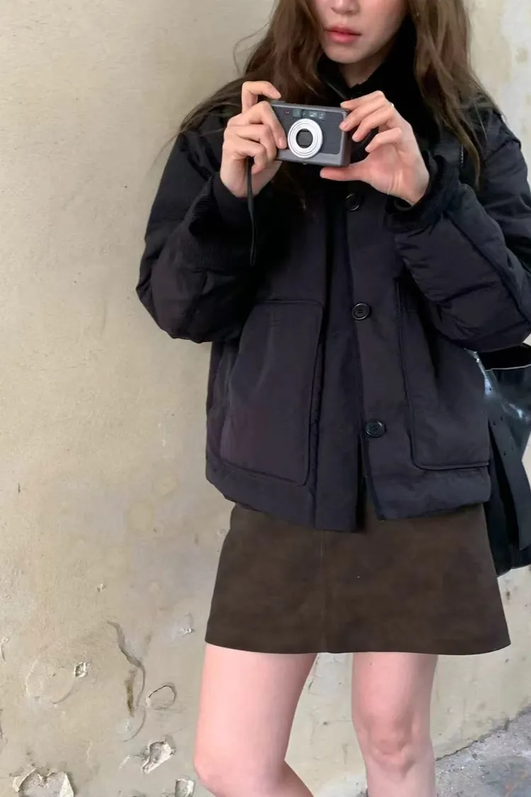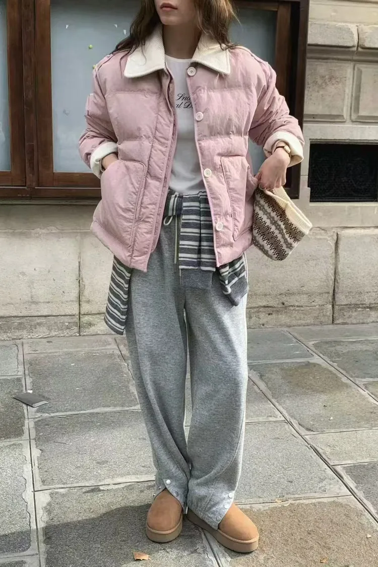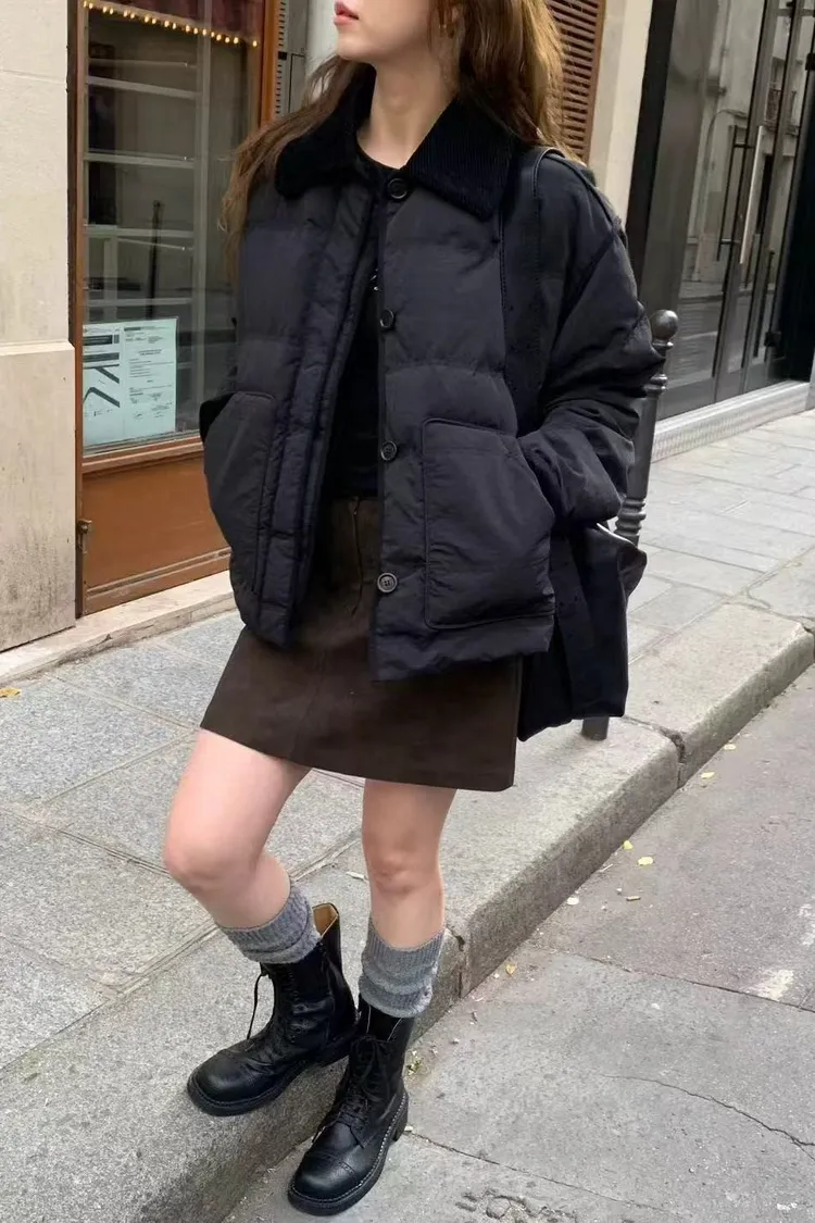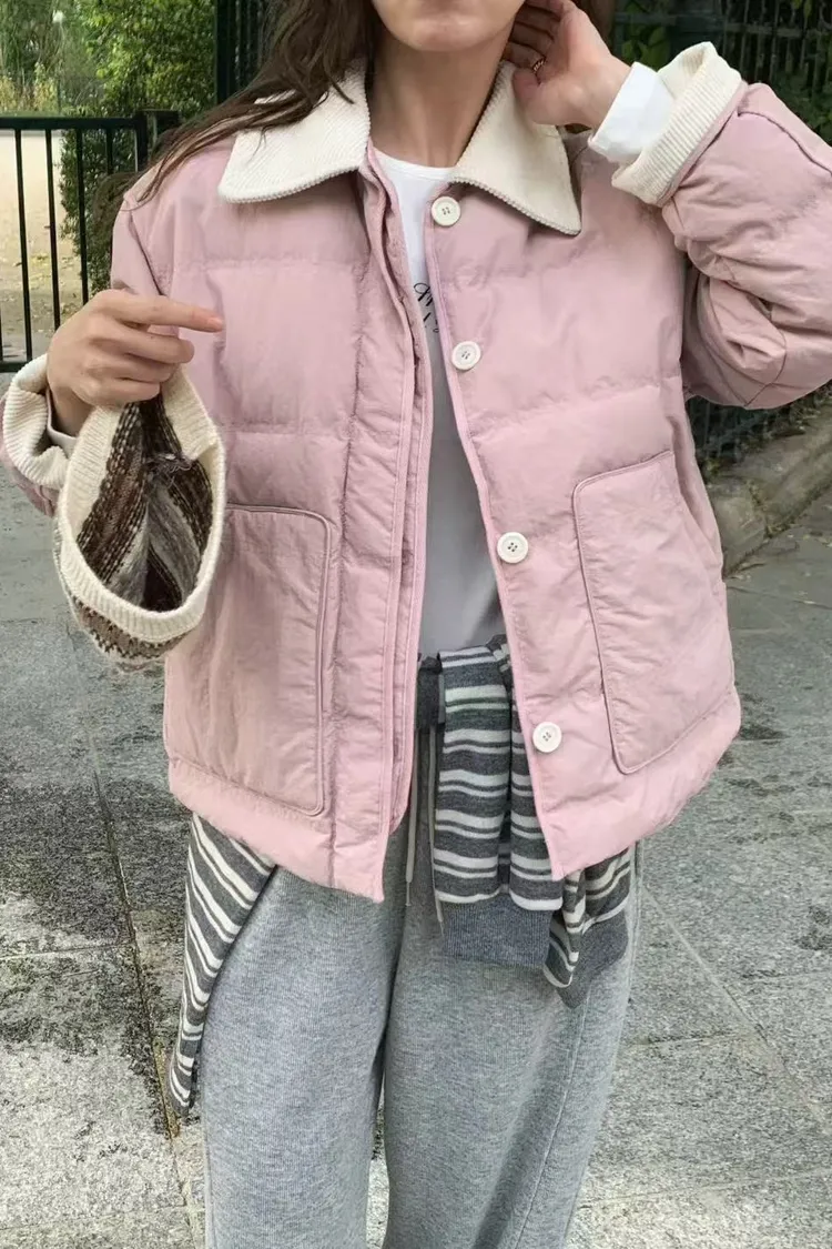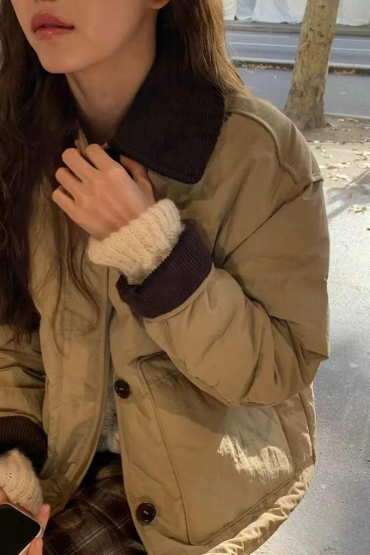 VENIR 燈芯絨領100%鴨絨羽絨外套