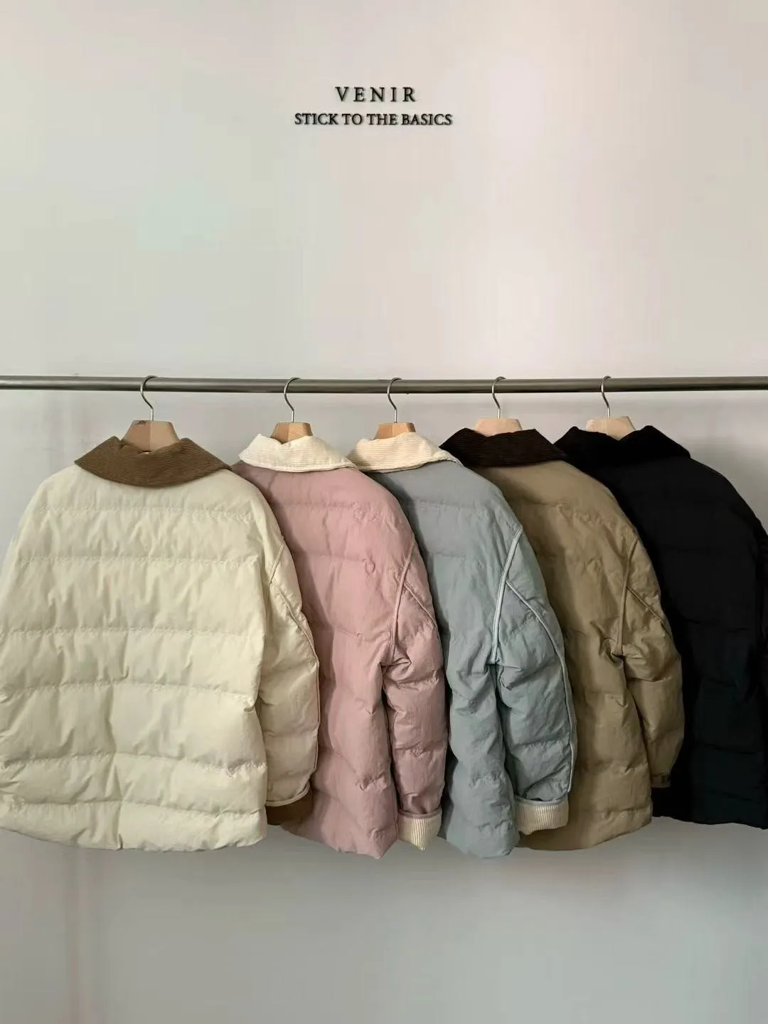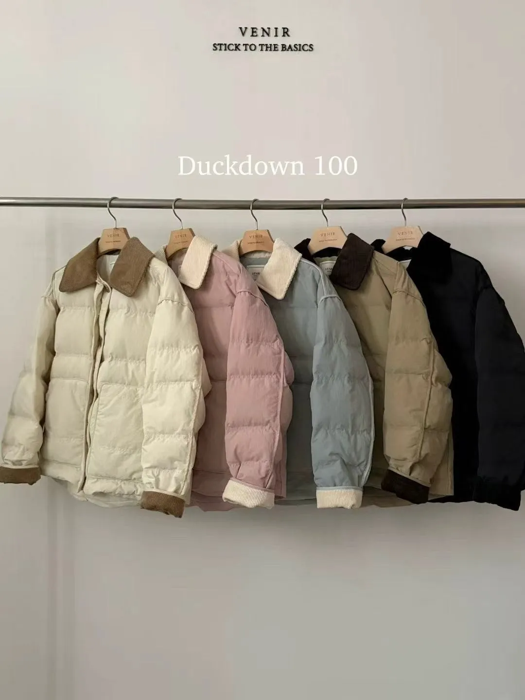 VENIR韓國設計師款 燈芯絨領鴨羽絨外套 短版羽絨外套 鴨絨100%