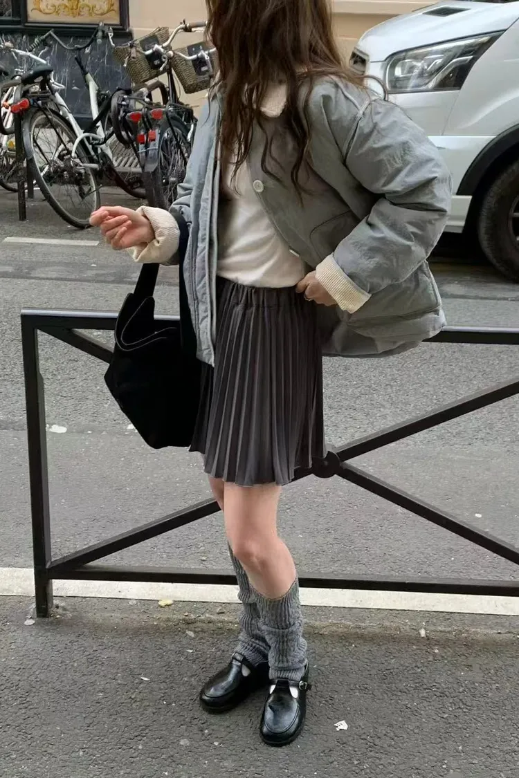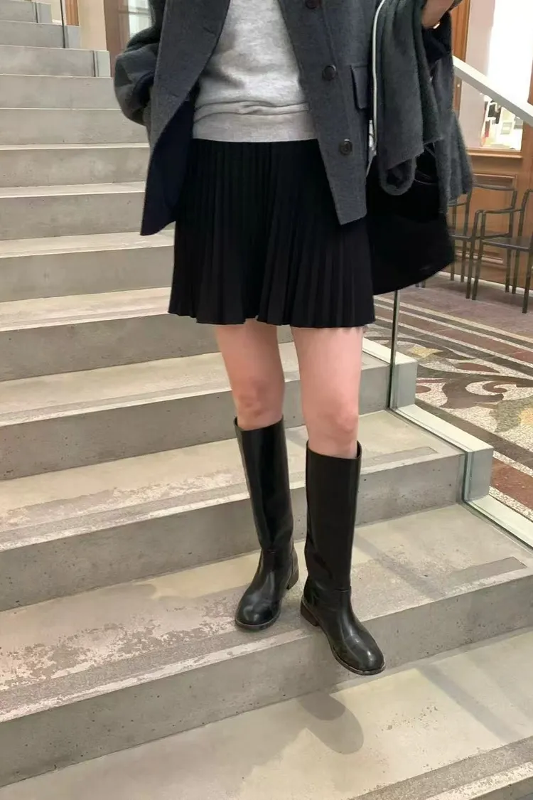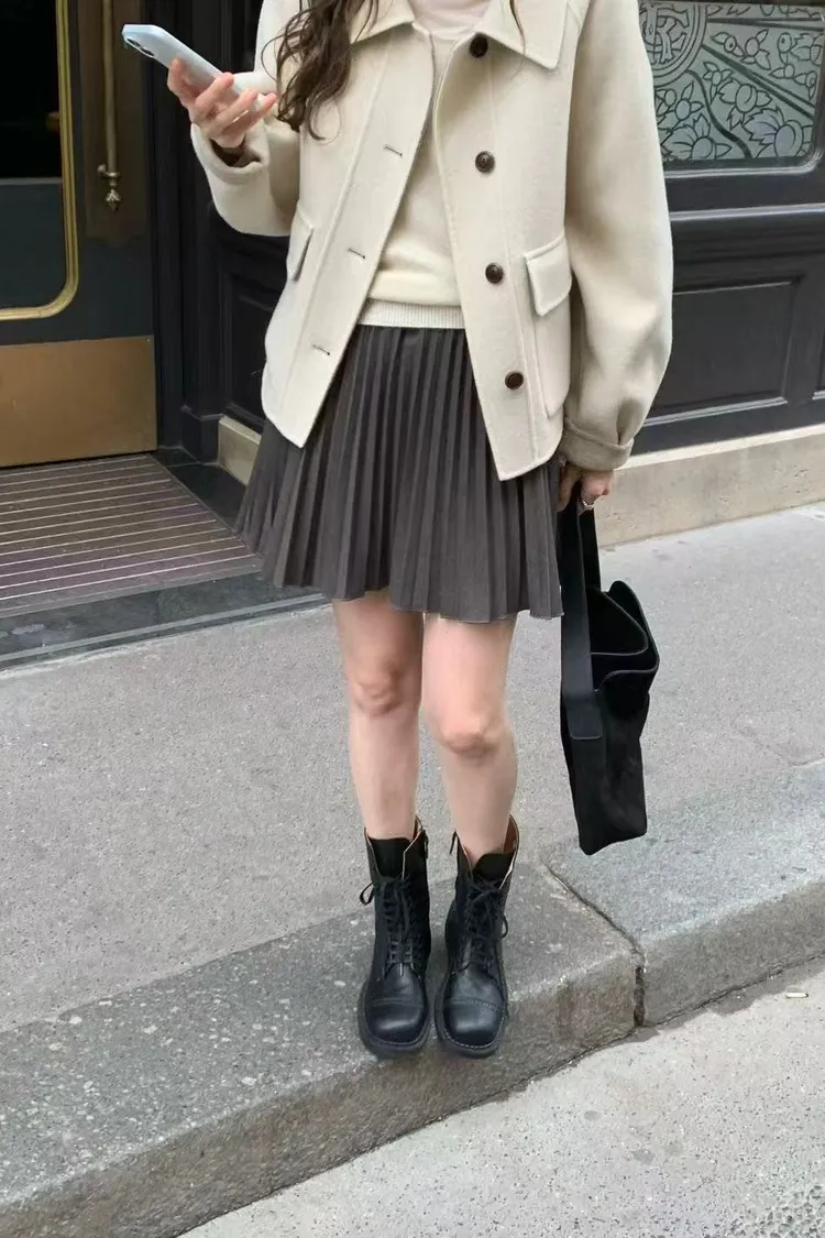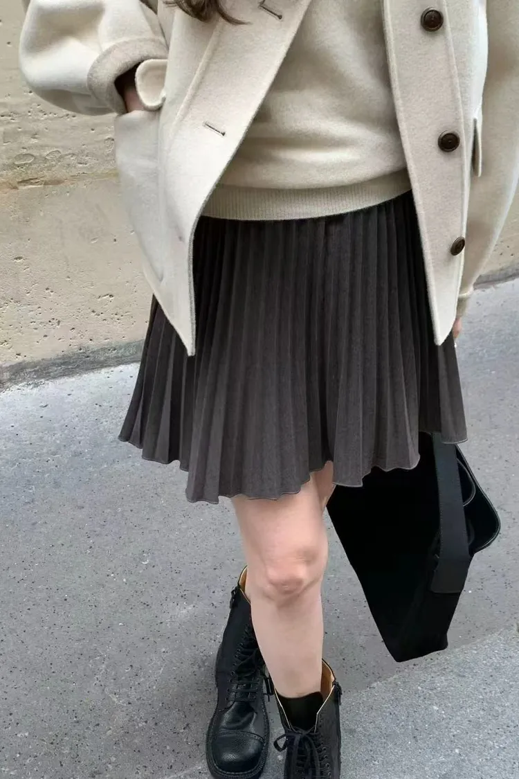 秋裝新款 休閒百褶裙 有內裡 顯瘦高腰A字裙