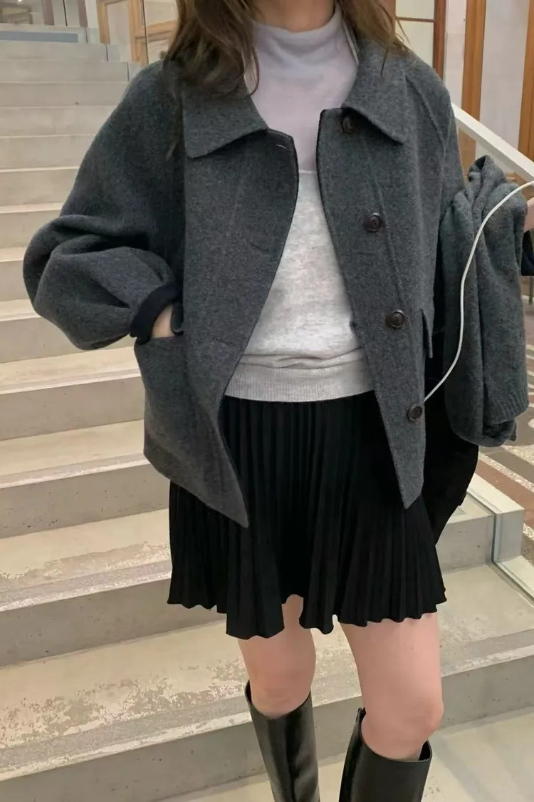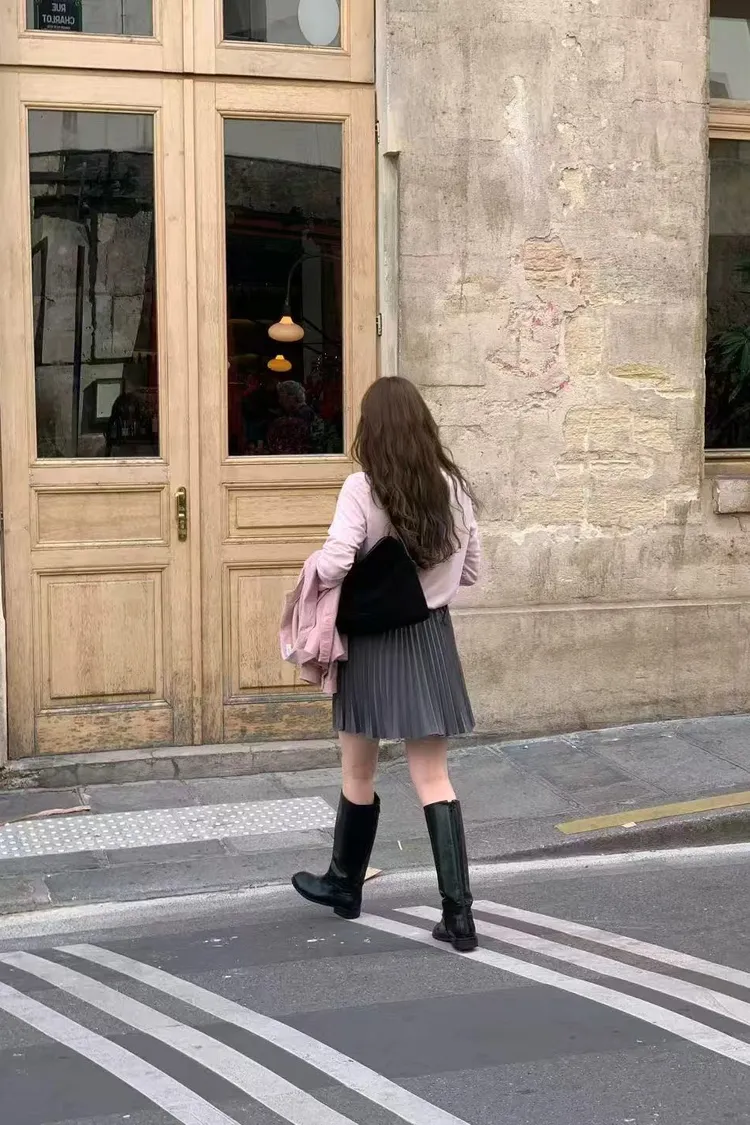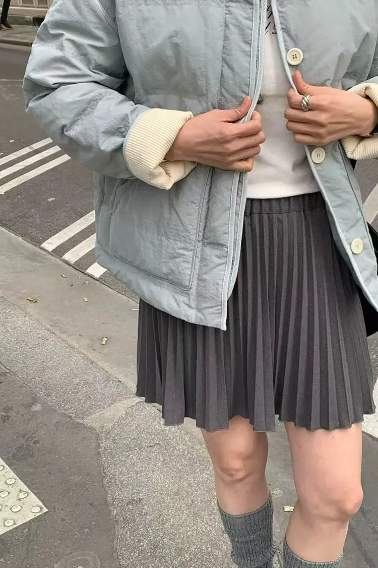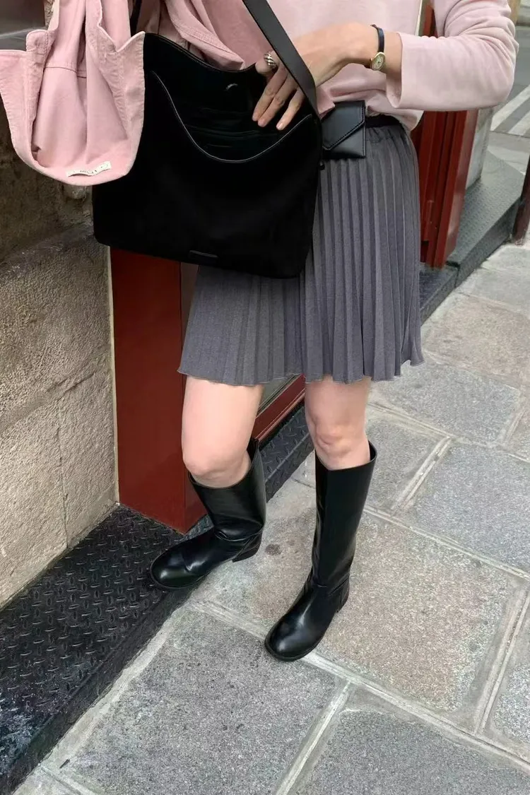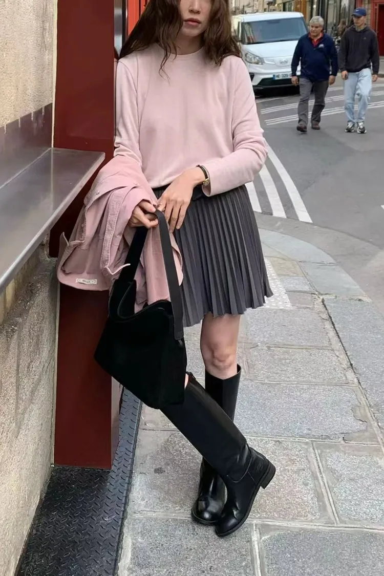 秋裝新款 休閒百褶裙 有內裡 顯瘦高腰A字裙