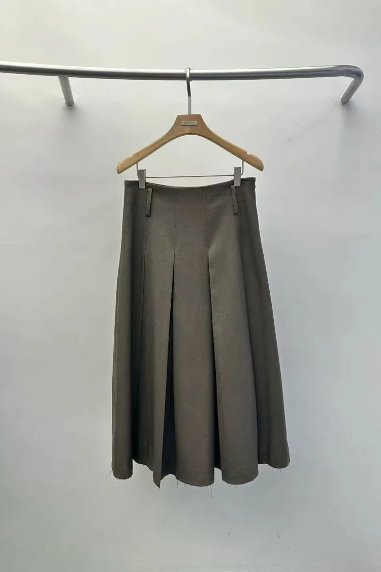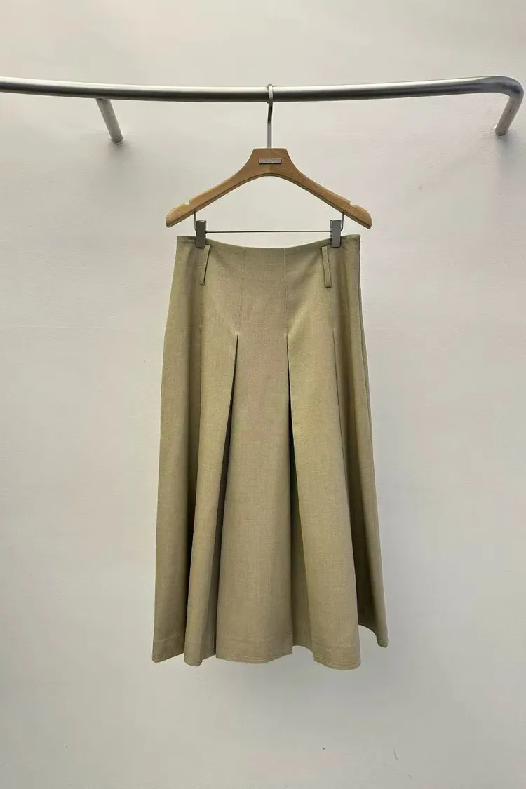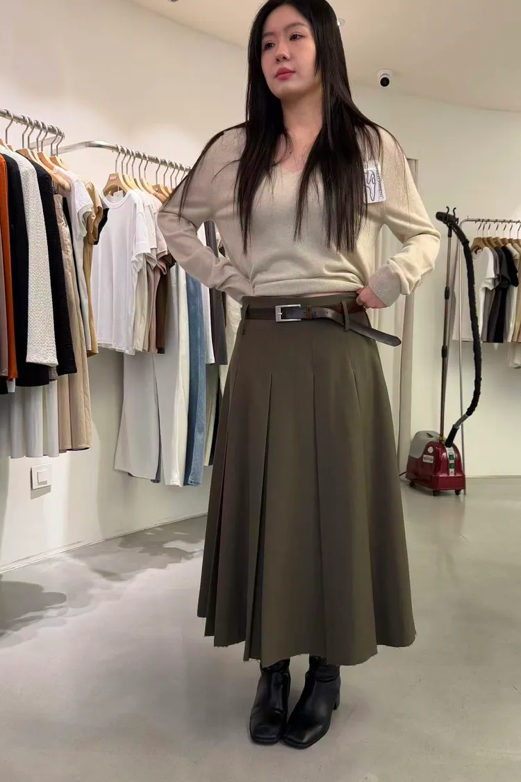 韓國連線實拍 質感高腰A字傘裙子 百褶長裙