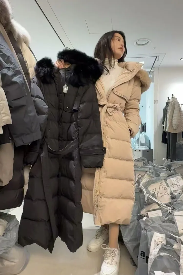 鴨絨長版羽絨外套100%