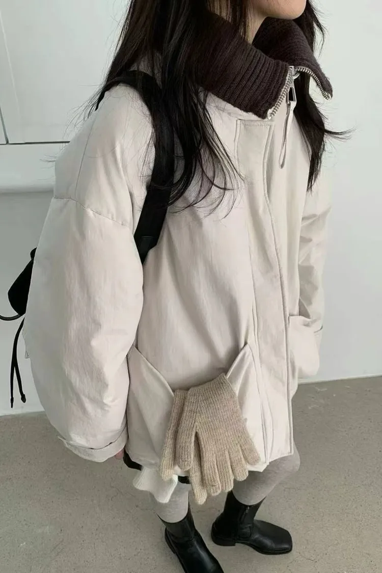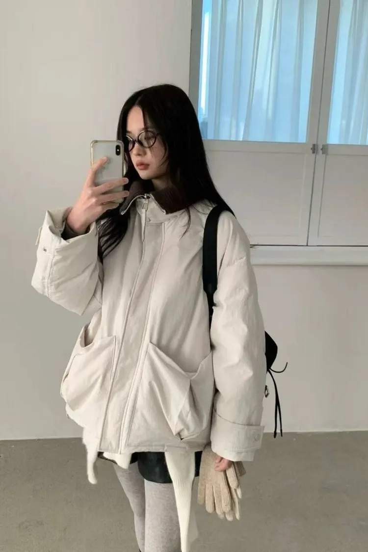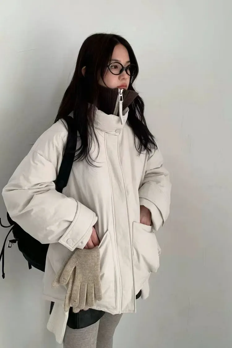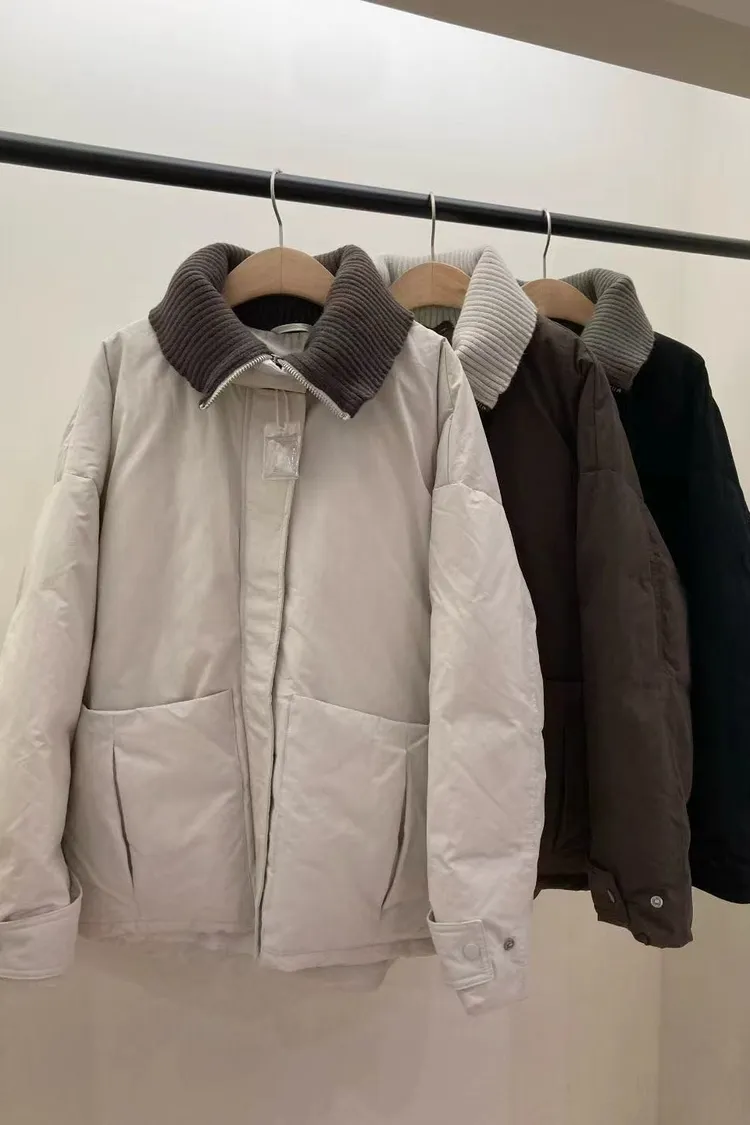 鴨絨100% 燈芯絨立領羽絨外套 冬季必備