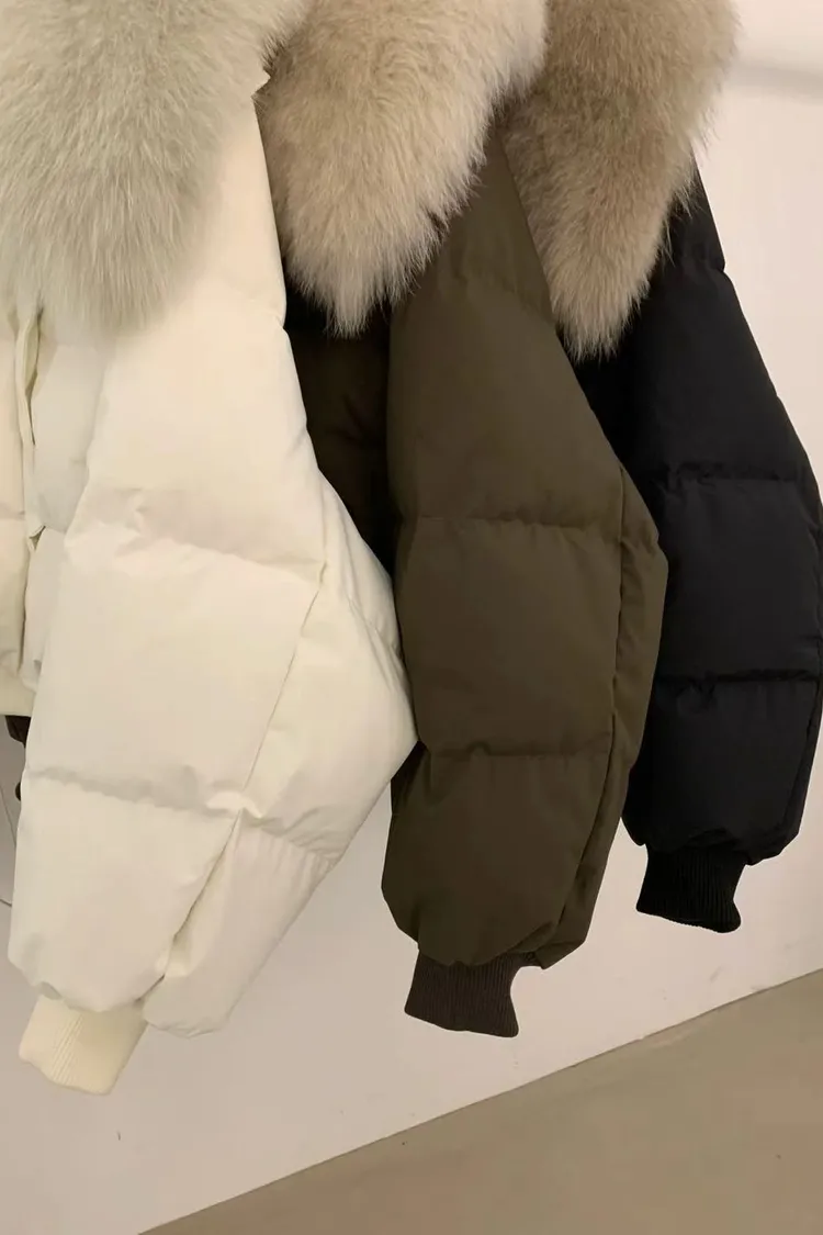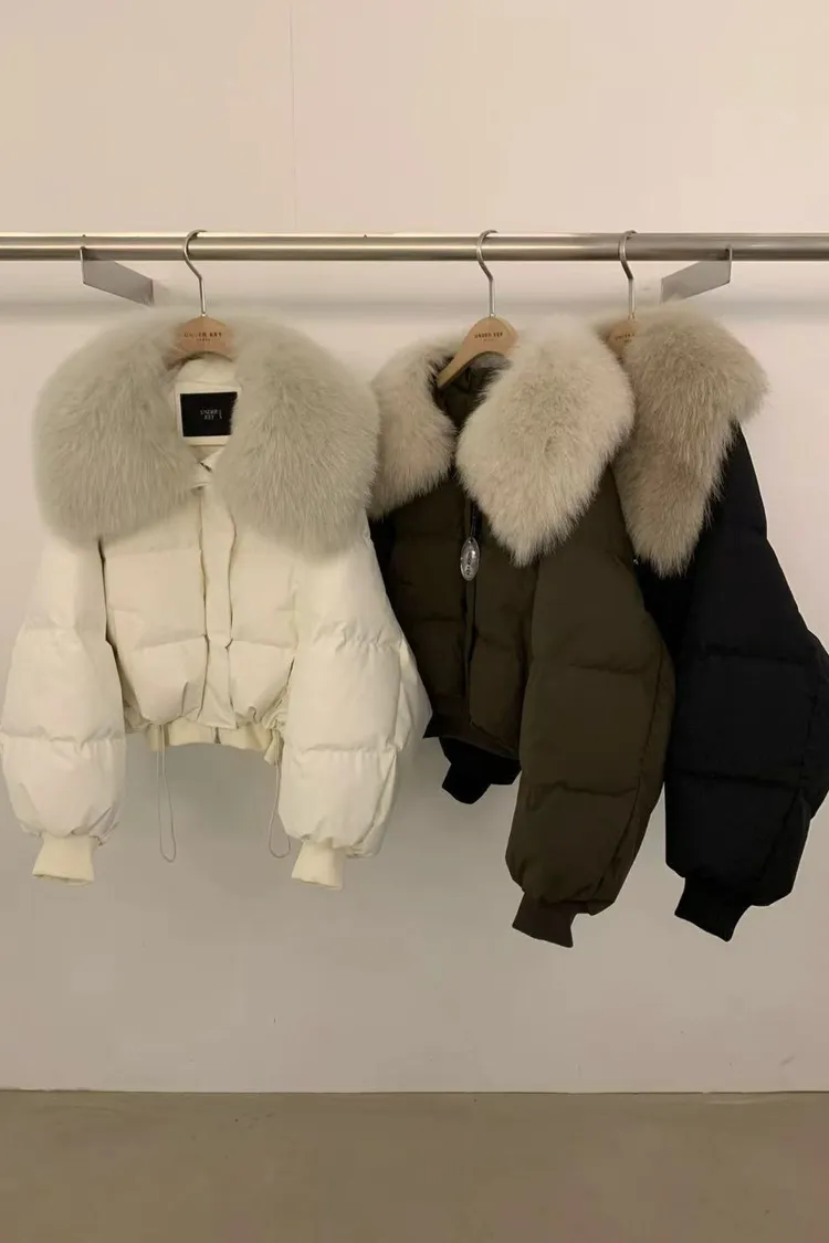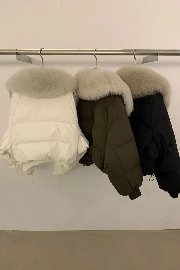 韓國連線款 狐狸毛領 鴨絨100%羽絨外套 保暖外套