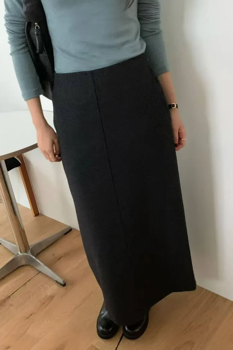 韓系拼接剪裁中長裙 線條感西裝裙