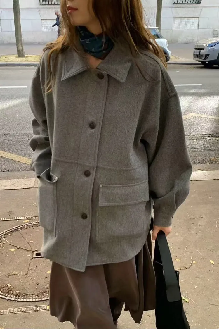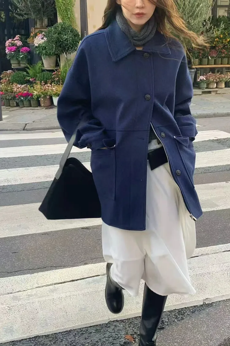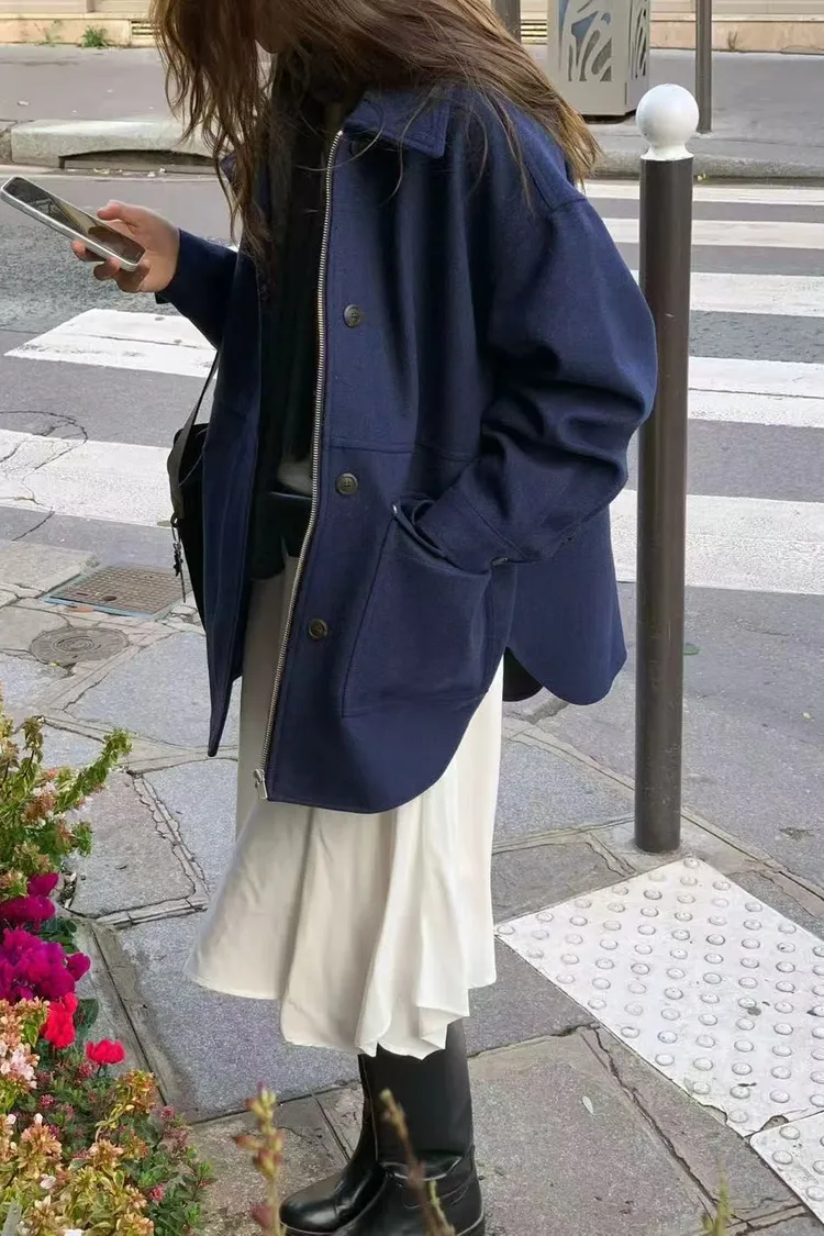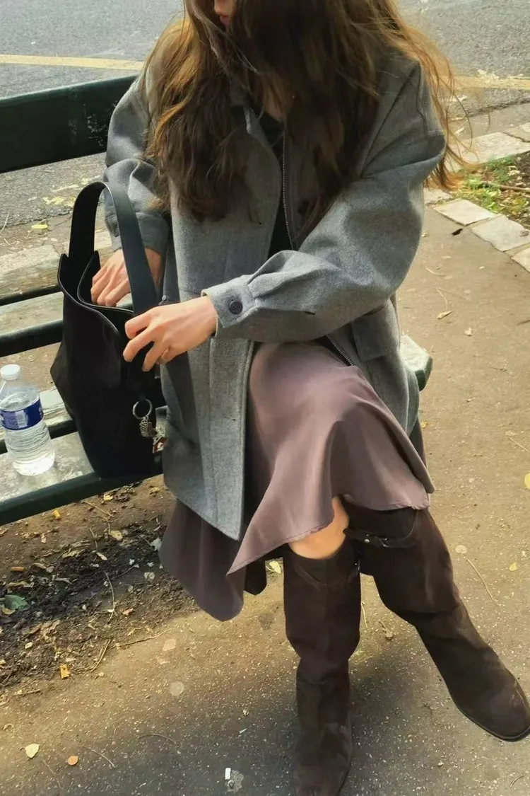韓國連線款 復古風拉鍊翻領大衣外套 中長款大衣外套